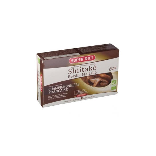 O Shiitake orgânico era utilizado durante a dinastia Ming como um elixir da vida. Para manter a sua vitalidade, o imperador chinês consumia-o todos os dias. O Reishi, um cogumelo selvagem encontrado nas florestas das montanhas profundas da Ásia, é uma fonte de energia vital. O Maitake, conhecido como o "rei dos cogumelos" no nordeste do Japão, é utilizado pelas suas propriedades benéficas. INFORMAÇÕESO shiitake reishi maïtaké biológico do laboratório Super Diet é um suplemento alimentar que reforça as defesas naturais do organismo. Ajuda a prevenir a fadiga crónica, favorecendo o funcionamento de todo o organismo graças às suas propriedades revigorantes e revitalizantes.