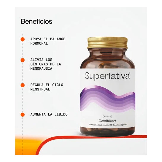 Superlativa Cycle Balance 60caps é um complemento alimentar elaborado para contribuir para o equilíbrio hormonal de maneira natural, para mulheres.