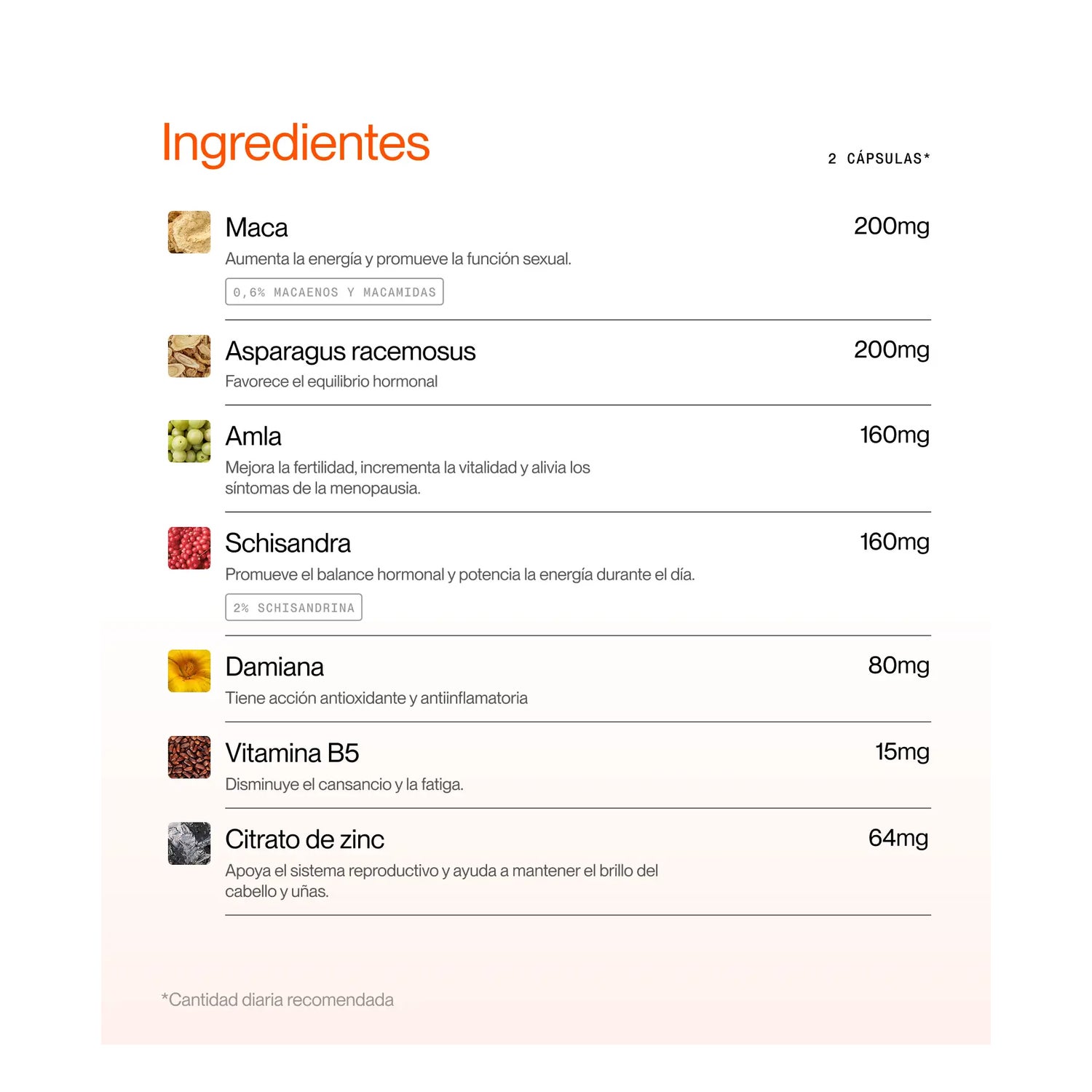 Ajuda na fertilidade e reprodução normais, enquanto promove a melhoria dos níveis de energia. Formulado com ativos adaptogênicos naturais, vitaminas do grupo B e zinco, que favorecem o funcionamento normal do sistema imunológico.