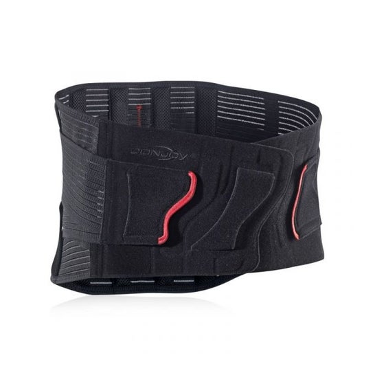 Cinto de suporte lombar que ajuda a aliviar e estabilizar a coluna lombar, para assim descarregar os músculos e ligamentos da coluna vertebral e do sacro.