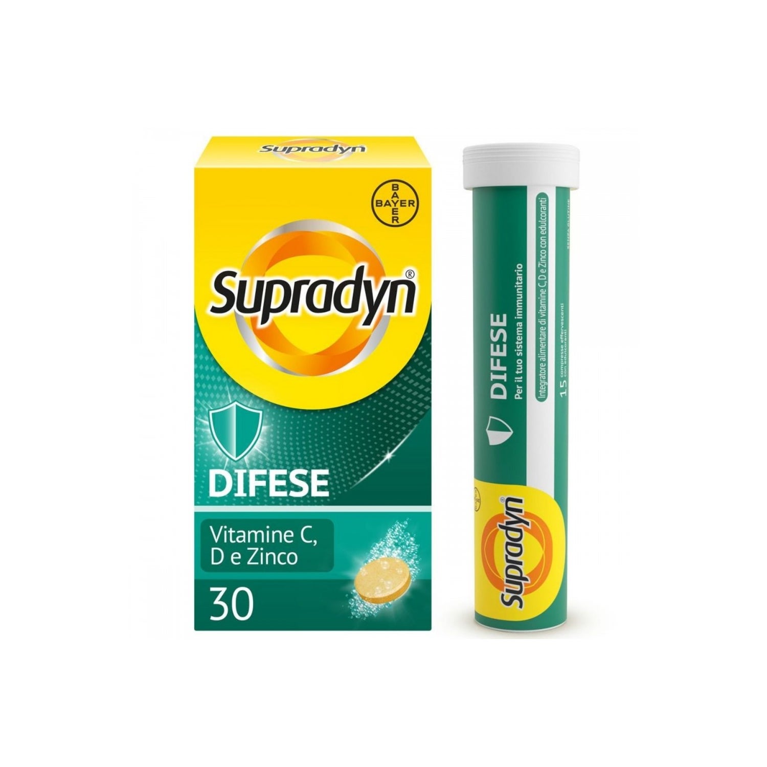 Supradyn Defensas Efervescentes é um suplemento alimentar em comprimidos efervescentes que fornece uma alta dose de: