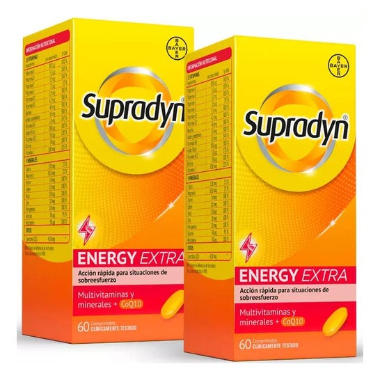 Supradyn Pack Energy Extra 2x60 comprimidos é um complemento alimentar especialmente projetado para ajudar a combater a fadiga e cobrir possíveis carências nutricionais.