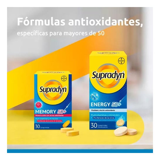 Supradyn Memory 50+ 2x30 comprimidos é um complemento alimentar especialmente recomendado para pessoas a partir dos 50 anos, com vitaminas que ajudam a um desempenho mental em condições normais.