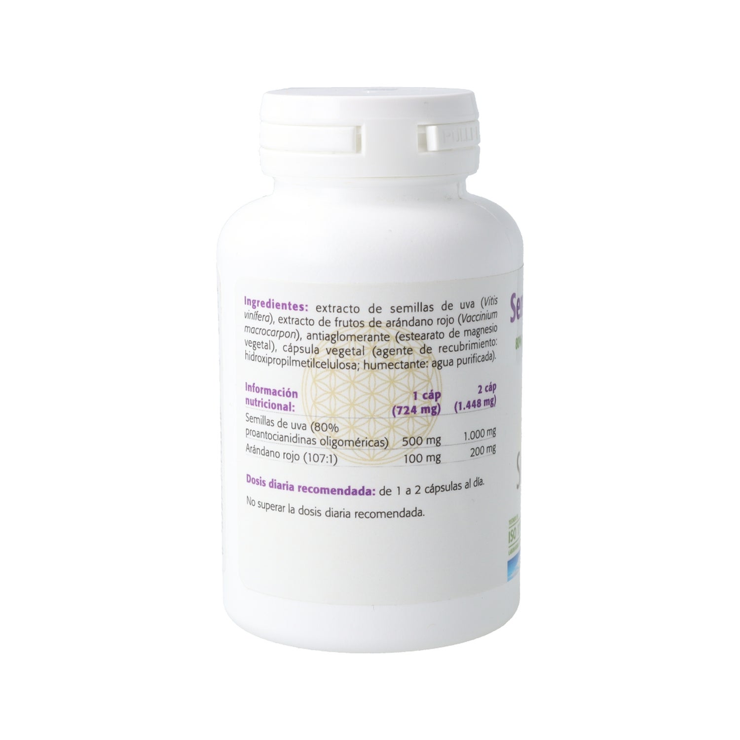 Sura Vitasan Sementes de Uva Forte 60vcaps é um complemento alimentar em cápsulas vegetais que combina extrato de sementes de uva e mirtilo para favorecer a saúde circulatória.