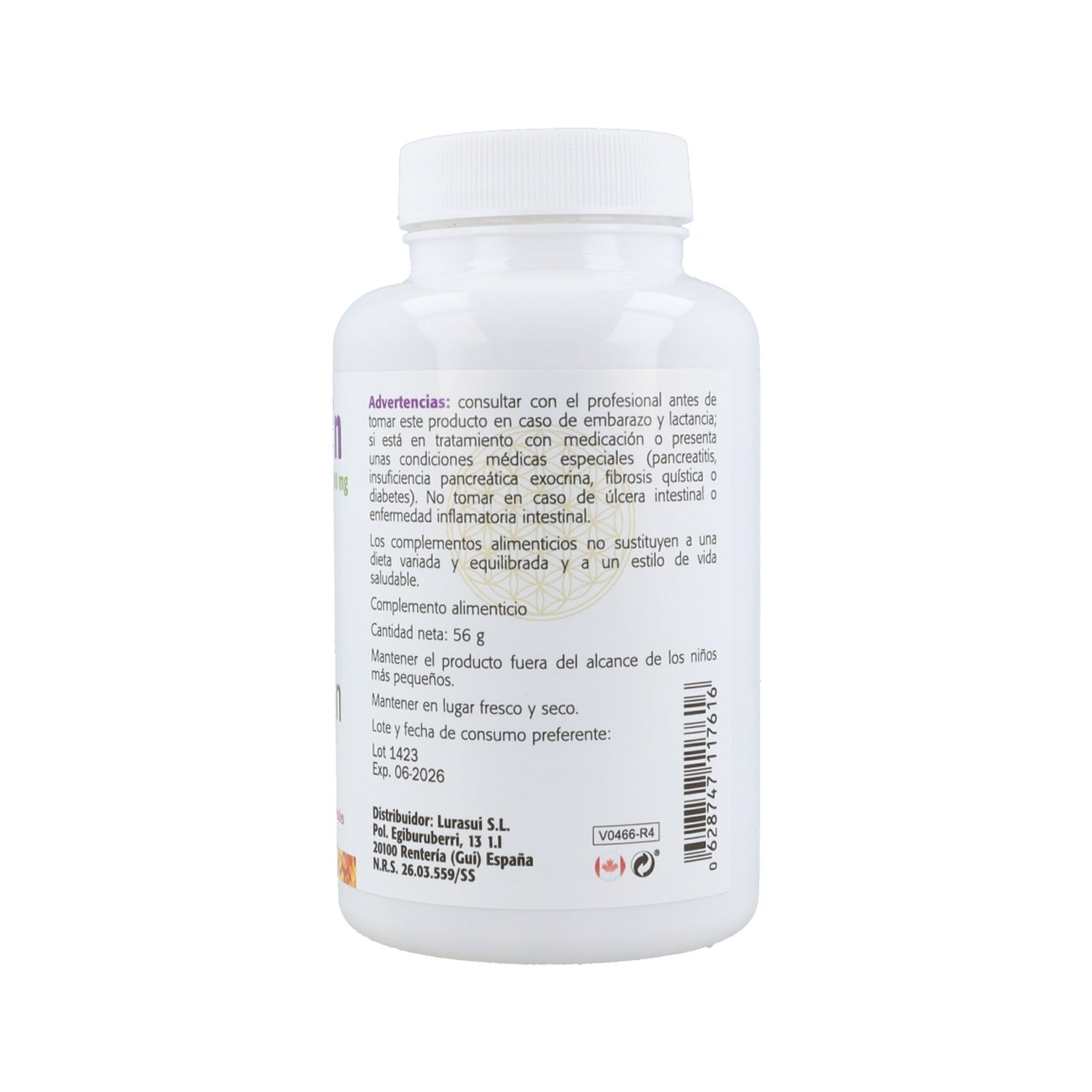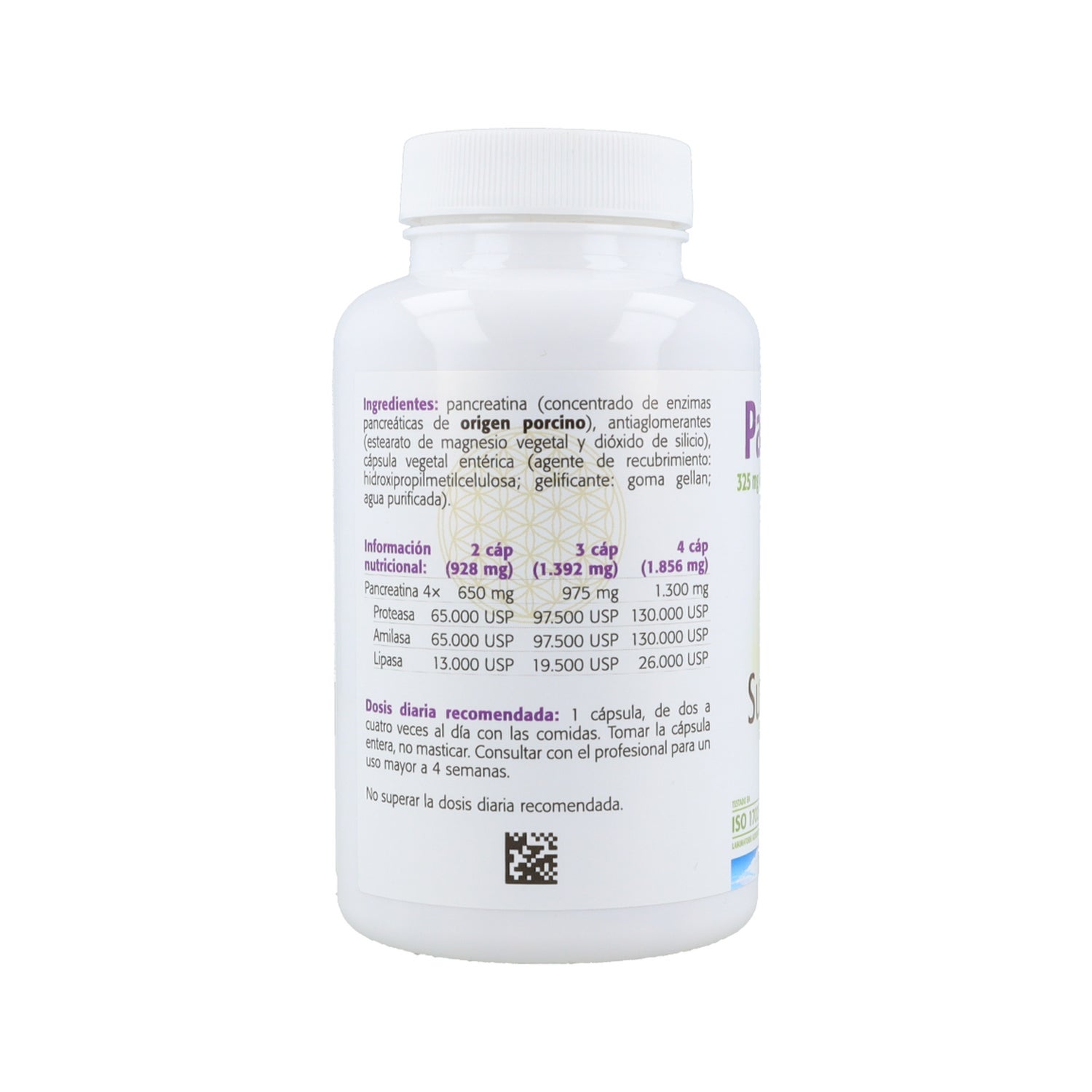 Sura Vitasan Pancreatin 120 cápsulas é um suplemento alimentar à base de enzimas pancreáticas concentradas de origem suína. Contém uma atividade normalizada de lipase, protease e amilase de 325 mg por cápsula, equivalente a 1300 mg de pancreatina.