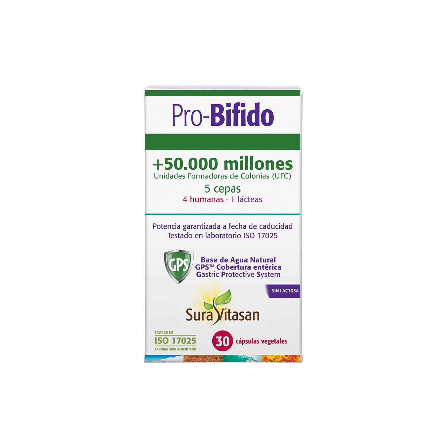 Pro-Bifido é um complemento alimentar único, composto apenas por 5 cepas específicas do gênero Bifidobacterium, com uma potência de 50 bilhões de UFC por cápsula e sem prebióticos.