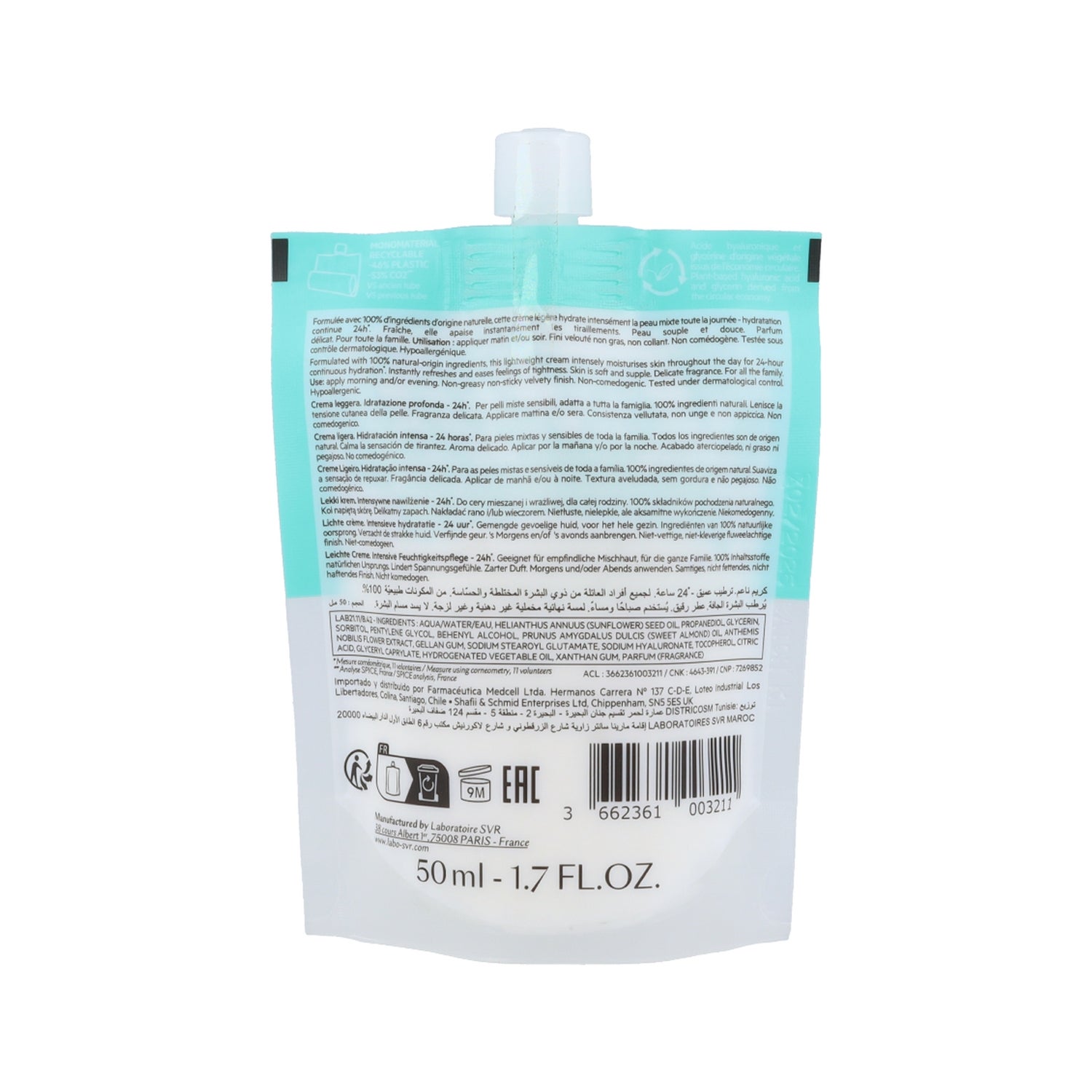 Creme hidratante para o cuidado diário da pele sensível do rosto. Formulado com ácido hialurónico que ajuda a melhorar a suavidade e a elasticidade da epiderme, ao mesmo tempo que promove um efeito de preenchimento. Além disso, contém glicerina, extrato de camomila, óleo de oliva e de girassol. É também uma fonte natural de Ómega 6 e 9, que apoiam o reforço da função de barreira e ajudam a melhorar a nutrição da pele. Elaborado com ingredientes 100% naturais. Indicado para peles mistas e com tendência acneica. Não comedogénico. Hipoalergénico. Testado dermatologicamente. Fabricado em França.