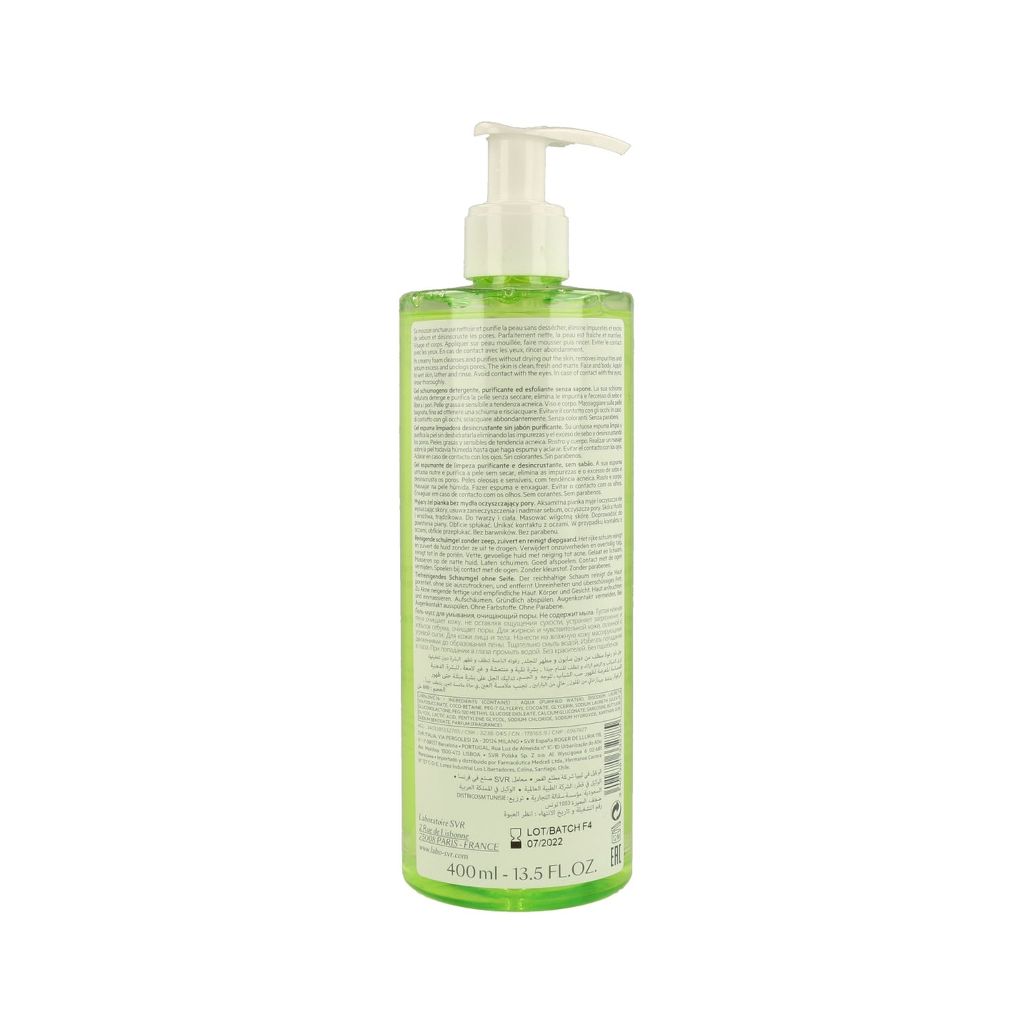 Gel de limpeza sem sabão com ação purificante e desincrustante. Em contacto com a água, gera uma espuma cremosa que ajuda a eliminar as impurezas e o excesso de sebo da pele. Pode ser utilizado no rosto e no corpo. Ajuda a matificar a pele e proporciona uma sensação de frescura. Indicado para peles sensíveis, mistas a oleosas e com tendência acneica. Fabricado em França.