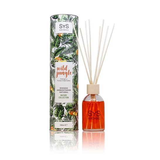 Difusor ambientador Mikado com aroma de Selva Selvagem (Manga e frutos), o recipiente contém 100ml de aroma dentro do frasco. O ambientador Mikado SyS Nature Wild Jungle destaca-se pelas suas notas frutadas e tropicais. A nova coleção de ambientadores Mikado SyS é inspirada na natureza. As suas fragrâncias permitir-lhe-ão viver experiências únicas através de aromas que o ligarão à natureza mais pura.