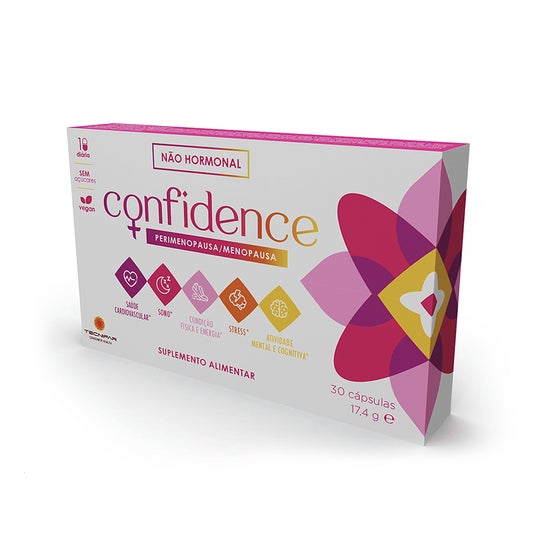 Confidence é um suplemento alimentar que contém Agripalma (Leonurus cardiaca L.) + Extrato de Pólen de Centeio (Secale cereale L.) + Ashwagandha [Withania somnifera (L.) Dunal, ginseng indiano] + Bacopa (Bacopa monnieri L.) + Raiz de Ouro (Rhodiola rosea L.) + Magnésio + Zinco + Vitamina D + Vitamina B6 + Vitamina B1 + Vitamina B12 + Melatonina. Suplementos alimentares são géneros alimentícios que se destinam a complementar e/ou a suplementar o regime alimentar normal e que constituem fontes concentradas de determinadas substâncias nutrientes como vitaminas e minerais ou outras, com efeito nutricional ou fisiológico. Este suplemento apresenta-se sob a forma de 30 cápsulas para a saúde da mulher na menopausa, incluindo saúde cardiovascular, sono, condição física e energia, stress, e atividade mental e cognitiva.