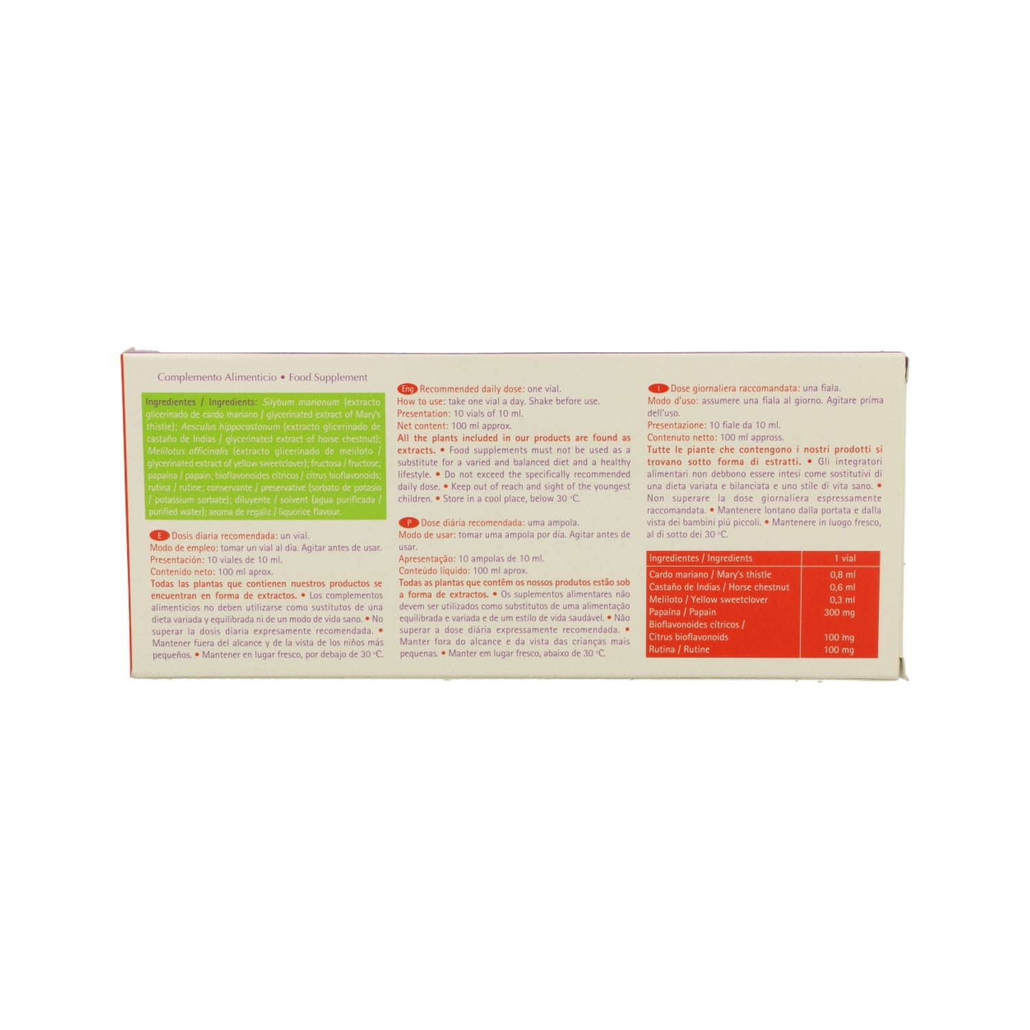 Suplemento alimentar em ampolas com propriedades drenantes que ativa e melhora o funcionamento do sistema linfático para ajudar a eliminar os líquidos, melhorando assim a sensação de inchaço e cansaço nas pernas, e limpa o organismo ajudando a eliminar as toxinas.