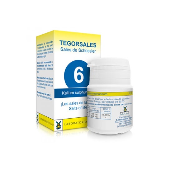 Suplemento alimentar que ajuda a expulsar o excesso de líquidos do organismo. Reduz também a quantidade de água absorvida pelo intestino grosso, actuando como um purificador ou desintoxicante indireto. O nº 6 é conhecido como o "sal anti-toxinas" e/ou o sal contra as constipações ou inflamações. Ajuda a reparar a pele e as unhas danificadas. Formato de 350 comprimidos.