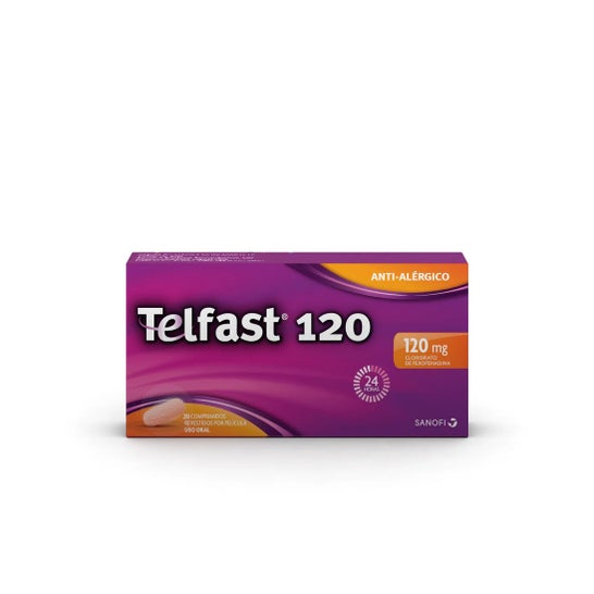Telfast 120 contém cloridrato de fexofenadina, que é um anti-histamínico que não causa sonolência. Telfast 120 é utilizado em adultos e adolescentes de idade igual ou superior a 12 anos, no alívio dos sintomas associados com rinite alérgica (por exemplo febre dos fenos) tal como: