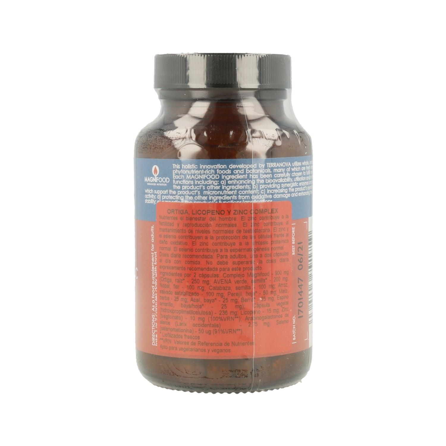 Terranova Urtiga Urtiga Lycopene Zinco 100caps suplemento alimentar formulado com extracto de urtiga, licopeno e complexo de zinco. a sua composição rica é ideal para cuidar e proteger a área relacionada com a próstata. contém também aveia verde, cacto, abóbora, arroz, salsa, milho, açaí, agrião, espinheiro-marinho, arabinogalactans de larício e selénio.
