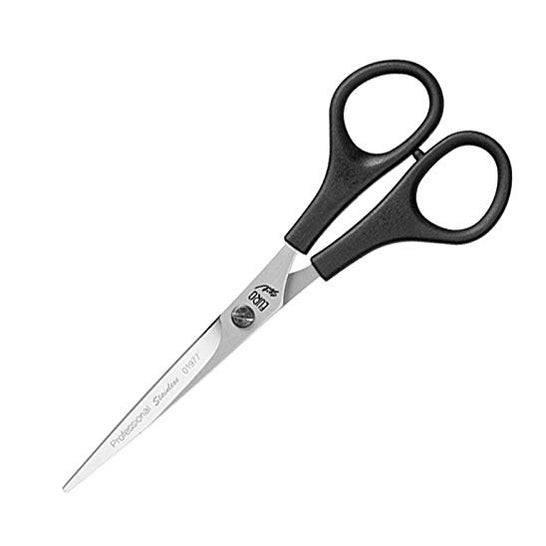 Tesouras de cabeleireiro profissionais que ajudam a cortar todos os tipos de cabelo. Fabricadas em aço inoxidável revestido, ajudam a efetuar cortes precisos e protegem a fibra capilar das pontas espigadas. Além disso, têm uma ponta reta e fina que facilita a modelação do cabelo. Têm um cabo de plástico preto de 15 cm para facilitar a utilização. Adequadas para utilização em salões de cabeleireiro e salões profissionais.