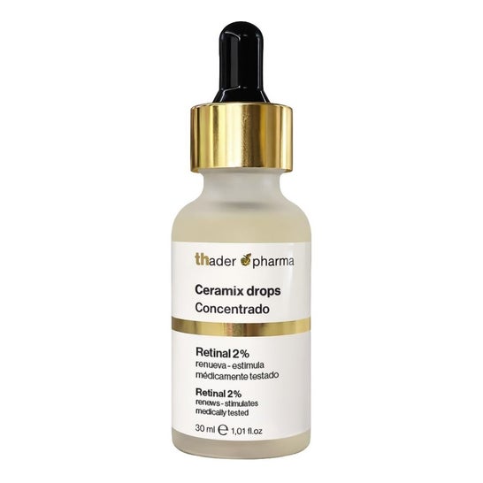 Th Pharma Retinal 2% Ceramix Drops 30ml é um concentrado antienvelhecimento avançado formulado para favorecer a renovação da pele e melhorar os sinais do envelhecimento. Incorpora retinal a 2%, que estimula a síntese de colágeno e acelera a renovação celular, ajudando a conseguir uma pele mais firme, elástica e uniforme.