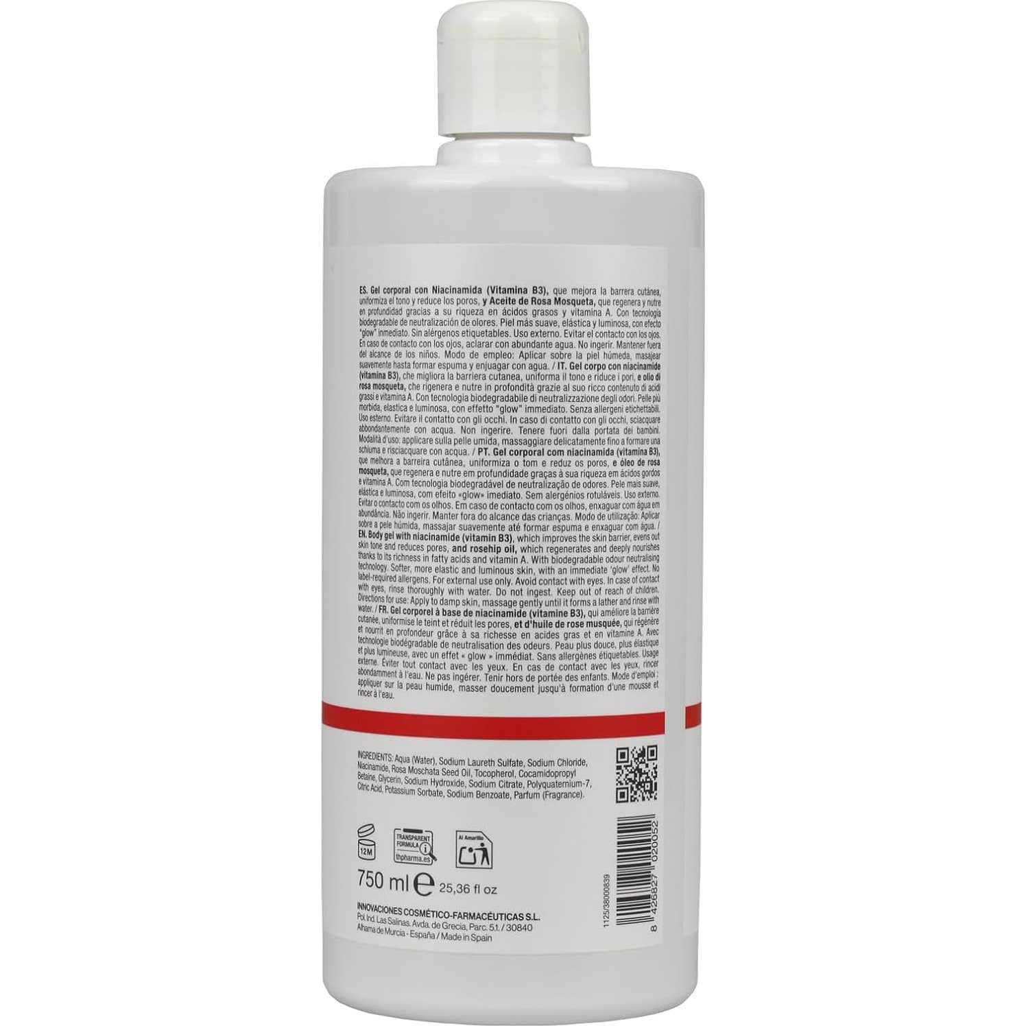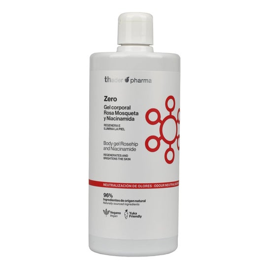 Th Pharma Zero Gel Rosa Mosqueta 750 ml para regenerar e iluminar a pele é um gel de banho para o cuidado corporal diário. Limpa suavemente e nutre em profundidade. Está enriquecido com niacinamida e óleo de rosa mosqueta, pensado para peles que buscam vitalidade e luminosidade.