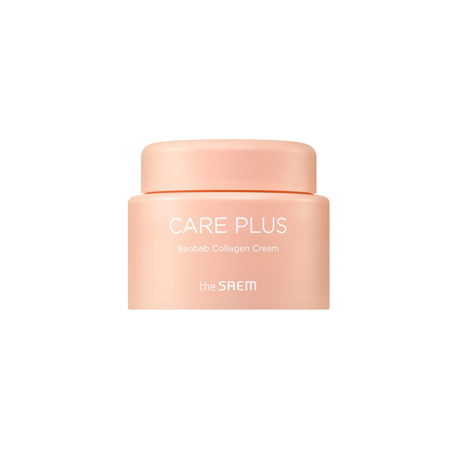 The Saem Care Plus Baobab Collagen Cream é um creme hidratante nutritivo que combina extrato de Baobab e um complexo de colágeno. Esta fórmula foi projetada para proporcionar regeneração e firmeza à pele, ajudando a melhorar sua aparência geral.