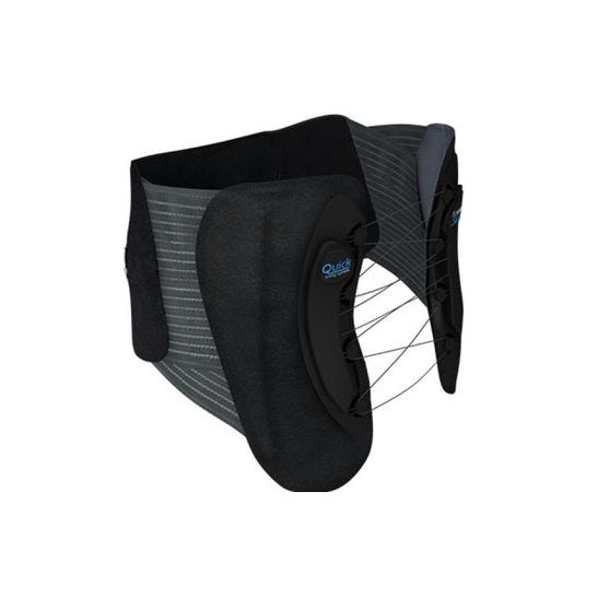 Cinto lombar de alta qualidade com cinta lombar, que proporciona suporte inicial para dores lombares agudas ou crônicas. É desenhado em preto com detalhes cor-de-rosa. Além disso, a cinta pode ser usada para prevenir dores lombares baixas. O tamanho 3 é para uma circunferência da cintura entre 103 e 121 cm.