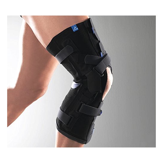 É uma joelheira de alta qualidade para limitar a flexão e extensão de 0 a 150 graus graças a uma articulação fisiológica patenteada. O sistema de correia cruzada na coxa proporciona mais estabilidade e melhor suporte. A joelheira é fácil de colocar graças a uma abertura de cinco vias na parte da frente e uma abertura para a rótula no meio. Tamanho 2: 34 - 36cm. Cor: Preto.