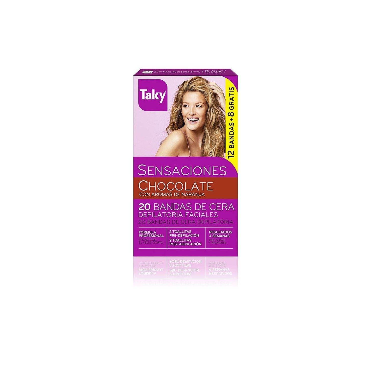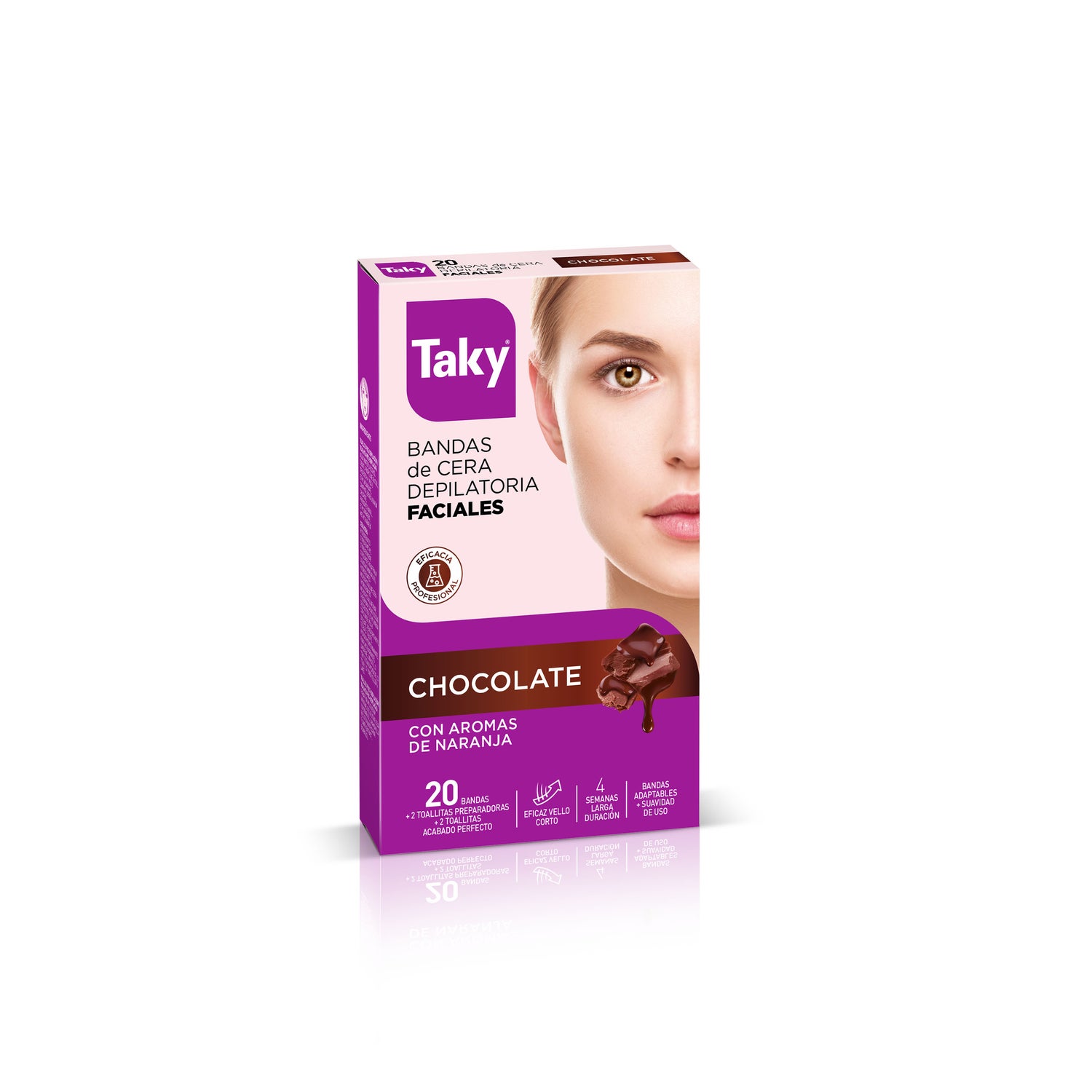 Taky Chocolate Bandas de Cera Faciais Depilatórias 12 + 8 uds são a solução ideal para uma depilação facial eficaz e suave. Estas bandas, projetadas especificamente para o rosto, permitem remover os pelos indesejados de forma rápida e confortável, deixando a pele suave por semanas.