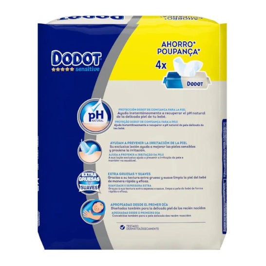 Estes toalhetes Dodot estão impregnados de uma loção dermatológica, especialmente desenvolvida para manter o pH natural da pele do bebé. Evitam o aparecimento de erupções cutâneas e de vermelhidão na pele. Em caso de ocorrência destes incómodos, proporcionam alívio e reduzem os sintomas. Oferecem uma excelente proteção, mesmo para os recém-nascidos. Nutrem e hidratam eficazmente as peles mais sensíveis graças à sua textura húmida e suave. A sua formulação resulta numa loção hidratante sem parabenos e sem álcool. Recomenda-se a utilização diária deste produto, nomeadamente em cada muda da fralda. No entanto, também pode ser uma excelente alternativa para o cuidado geral do bebé quando está fora de casa. O produto é apresentado numa embalagem de 216 unidades.
