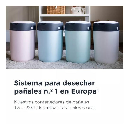 Para garantir a máxima eficácia na proteção contra odores e germes, é recomendável utilizar apenas refis Twist & Click neste recipiente. O produto inclui um cartucho de refil, e os refis estão disponíveis para compra individual ou em pacotes.