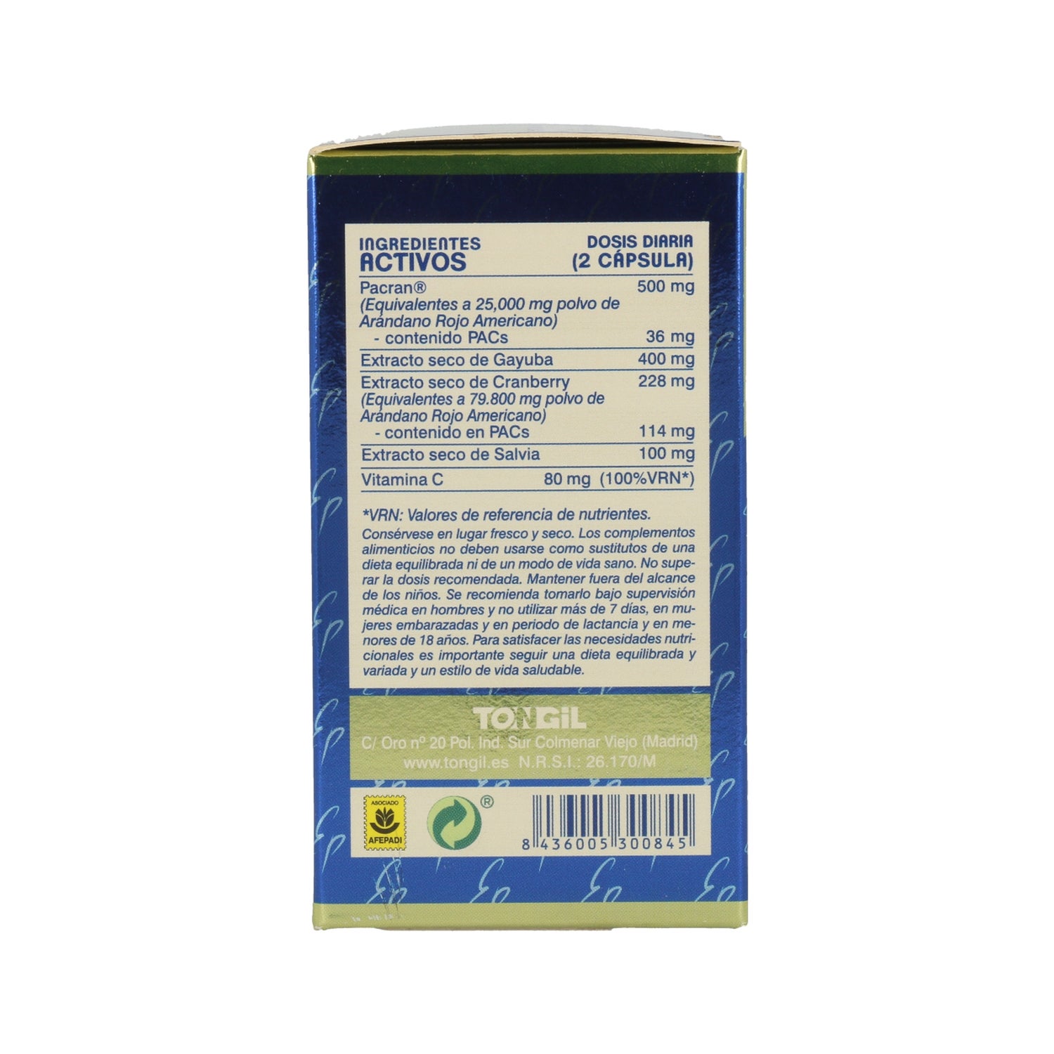 É fabricado a partir de arando americano e das suas substâncias anti-adesivas chamadas proantocianidinas, que impedem as bactérias que causam a cistite de aderir ao trato urinário, especialmente a bactéria Eschericia coli.