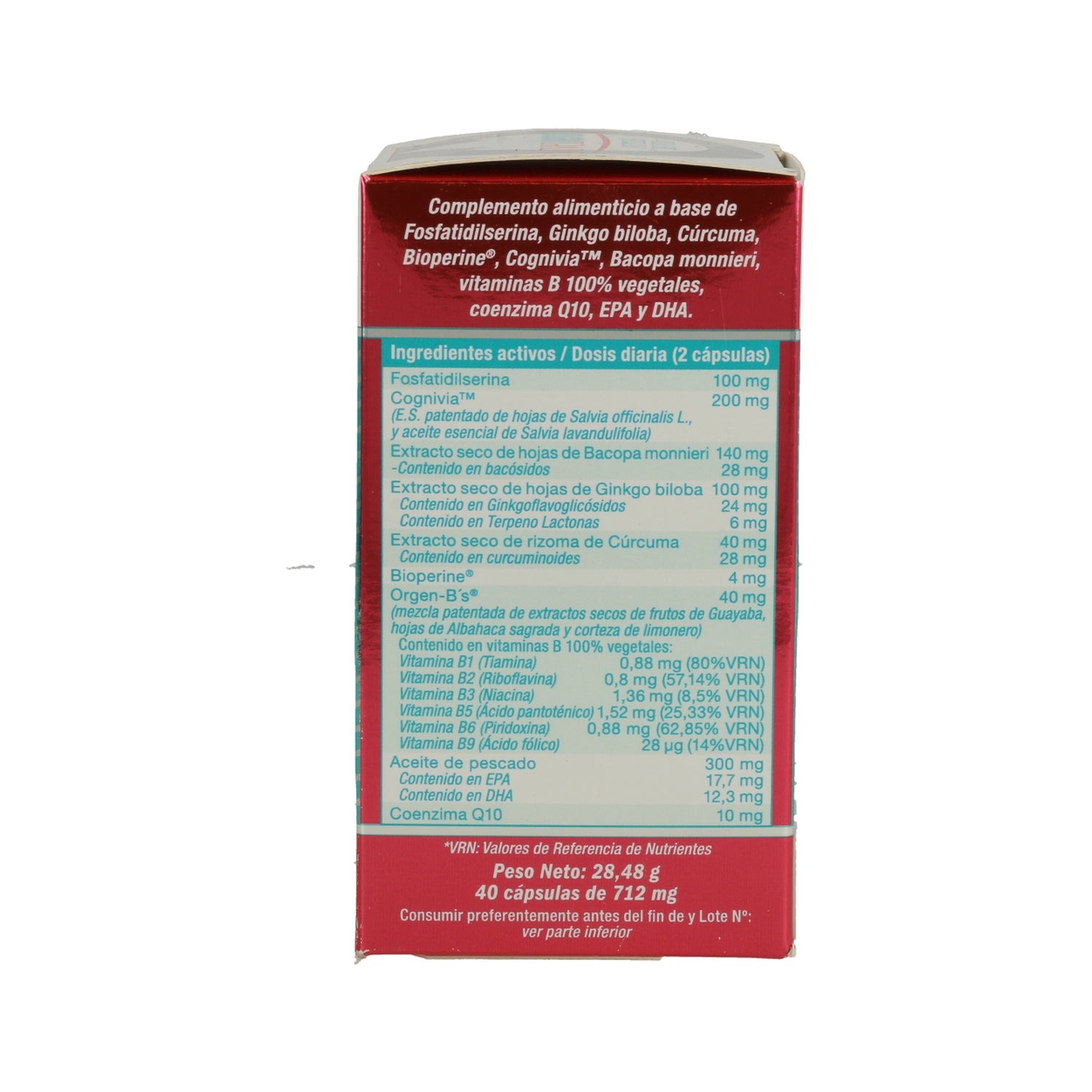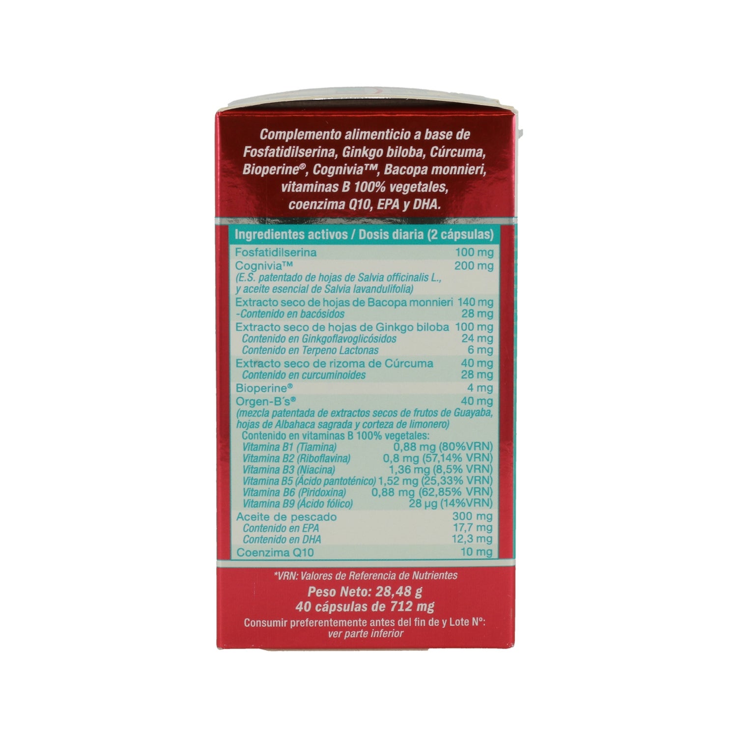 A sua fórmula é enriquecida com fosfatidilserina, ginkgo biloba, curcuma, bioperine®, cognivia™, bacopa monnieri, vitaminas B 100% vegetais, coenzima Q10, EPA e DHA.