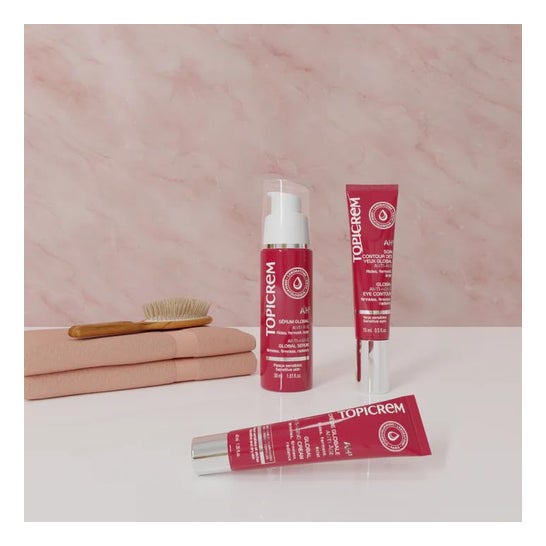 O sérum global Topicrem AH3 é um sérum concentrado que contém 3 ácidos hialurónicos de alta pureza, vitaminas C e E estabilizadas, vitamina PP e um dipéptido. Graças a isso, retarda os sinais de envelhecimento e proporciona uma maior luminosidade à pele. Evita o aparecimento de rugas, unifica o tom da tez e redensifica a pele. Tem uma textura fundente agradável na pele. Pode ser usado na pele do rosto e do pescoço. Protege a pele dos danos causados pela poluição e pela luz solar. É indicado para peles sensíveis e proporciona uma pele firme e mais redefinida, realçando assim o contorno facial. Combinado com o fluido antienvelhecimento Topicrem AH3, potencia-se o seu efeito. O sérum global antienvelhecimento da Topicrem vem em formato de tubo de 4 ml.