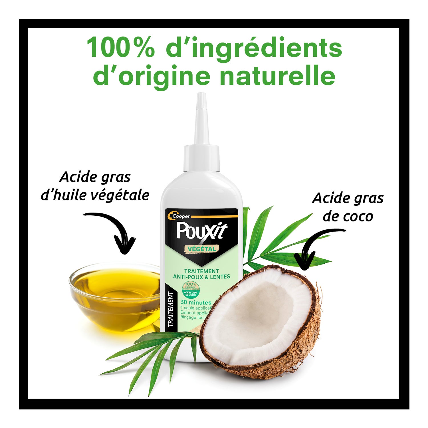 Pouxit Végétal Tratamento Anti-piolhos e lêndeas 200ml + Pente é um tratamento que actua em apenas 30 minutos, através de um efeito físico, para restaurar a saúde do couro cabeludo. A sua fórmula totalmente natural à base de um complexo de ácidos gordos de coco e de óleo vegetal de origem natural obstrui os orifícios respiratórios e excretores do piolho e da lêndea, provocando a sua morte. Pouxit Végétal actua igualmente desidratando o piolho e o lêndea, provocando a sua morte por secagem. Graças a um prático bico aplicador, este tratamento é fácil de utilizar, oferecendo uma fórmula suave para o couro cabeludo.adequado para o couro cabeludo de adultos e crianças com mais de 6 meses.pente incluído.
