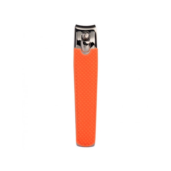 Corta-unhas de grandes dimensões cobertas por uma bainha tipo silicone cor-de-laranja constituída por uma pinça composta por duas lâminas metálicas com uma extremidade de corte ligeiramente curva para dentro e uma terceira lâmina mais pequena que actua como alavanca, que corta o prego com segurança e conforto quando o prego é inserido e é aplicada pressão.