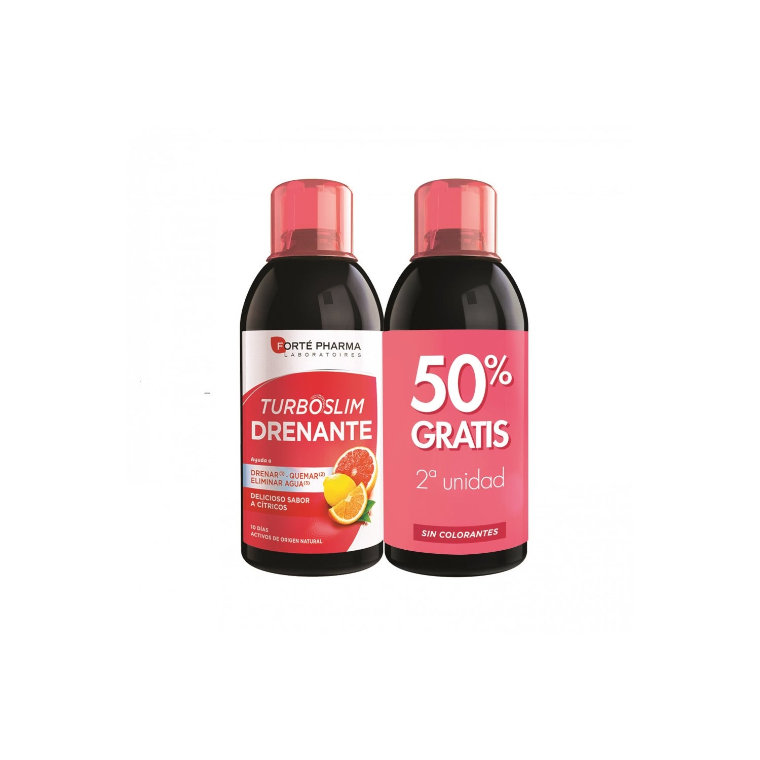Forté Pharma Turboslim Drenante Cítricos 2x500ml é um complemento alimentar que ajuda a drenar e purificar o organismo.