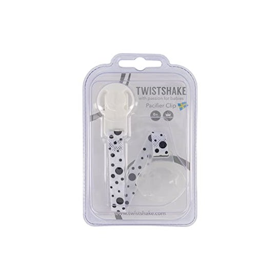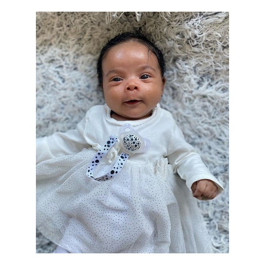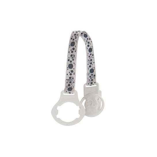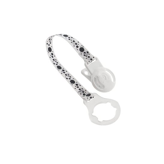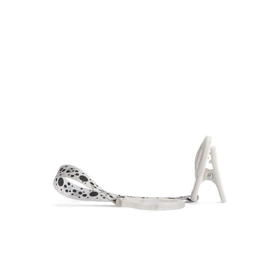 Porta-chupetas desenhado numa divertida estampa a preto e branco que está equipada com uma fita e um clip, que permite fixar a chupeta à roupa do bebé, reduzindo o risco de a perder ou de cair no chão e de contrair bactérias ou vírus que podem prejudicar a sua saúde. Compatível com todas as chupetas. *A cor e o design do produto podem variar dependendo da disponibilidade.