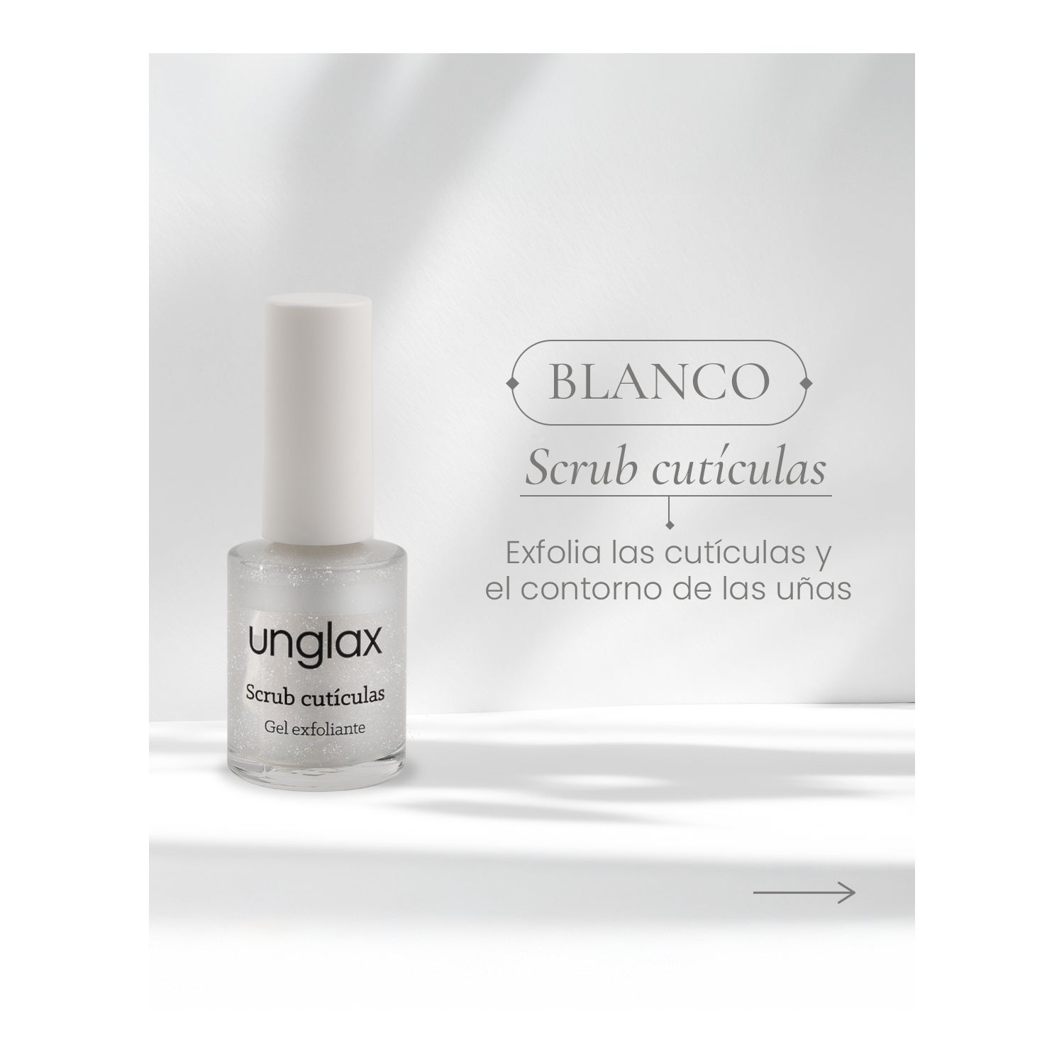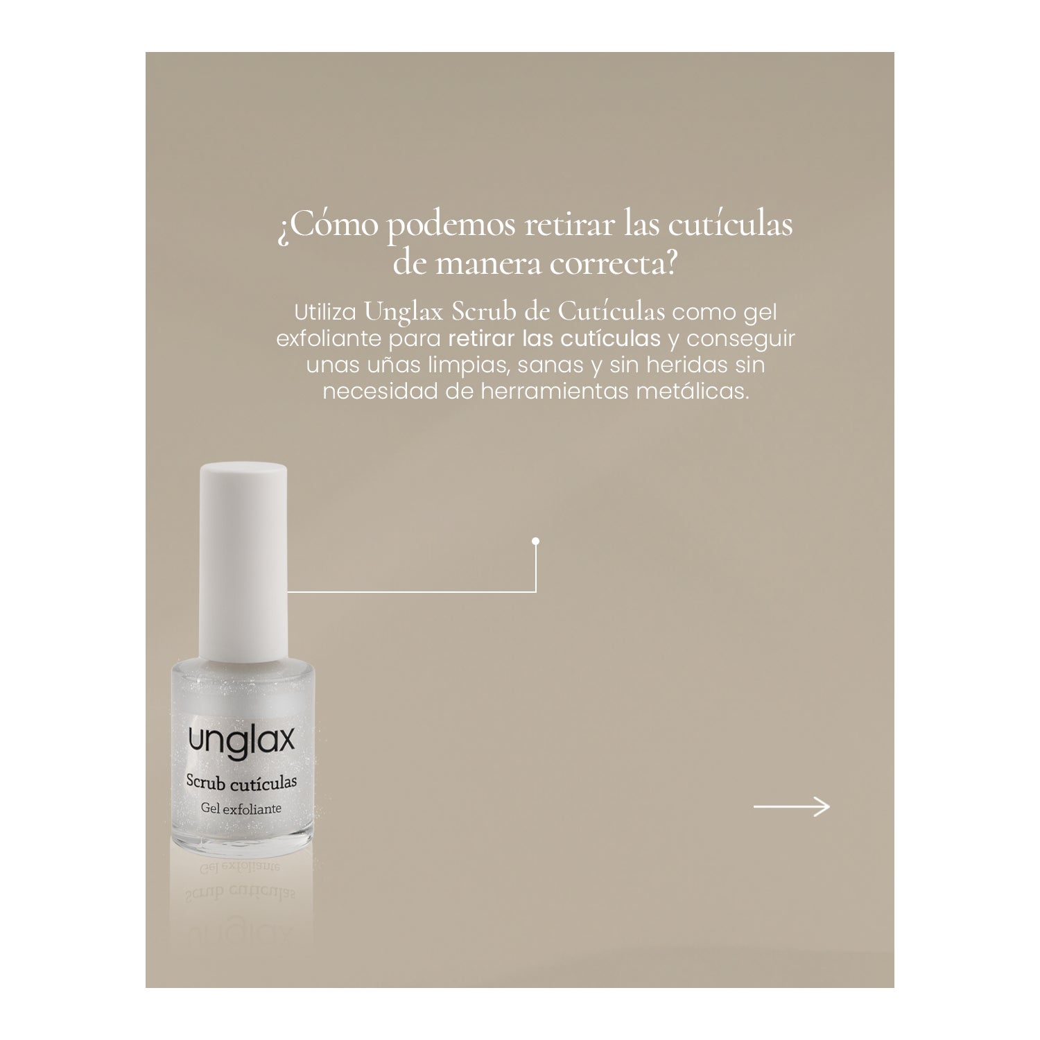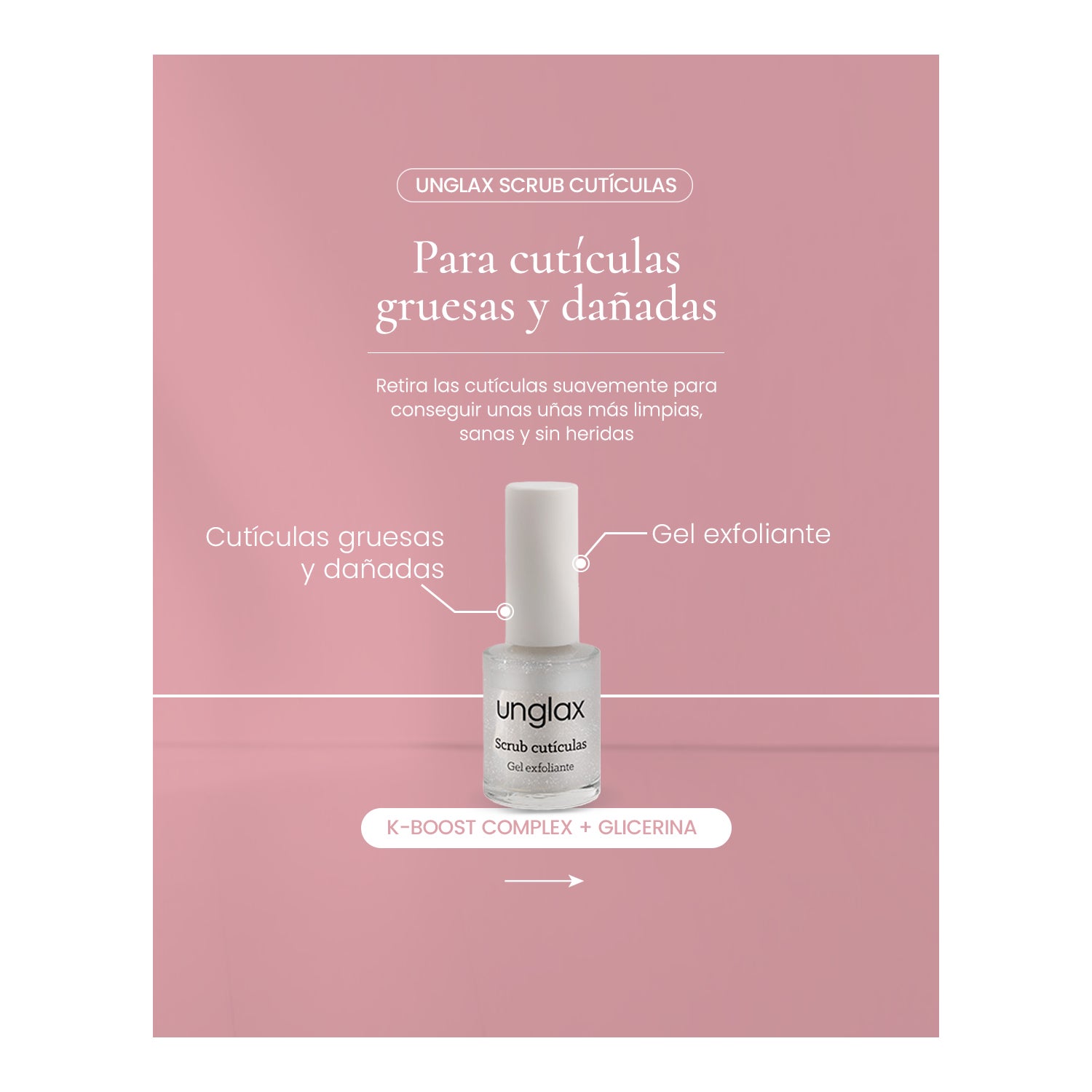 Unglax Scrub Cutículas Gel Exfoliante 10ml é um gel esfoliante projetado para ajudar a limpar as células mortas das cutículas, sem afetar as unhas nem causar dor.