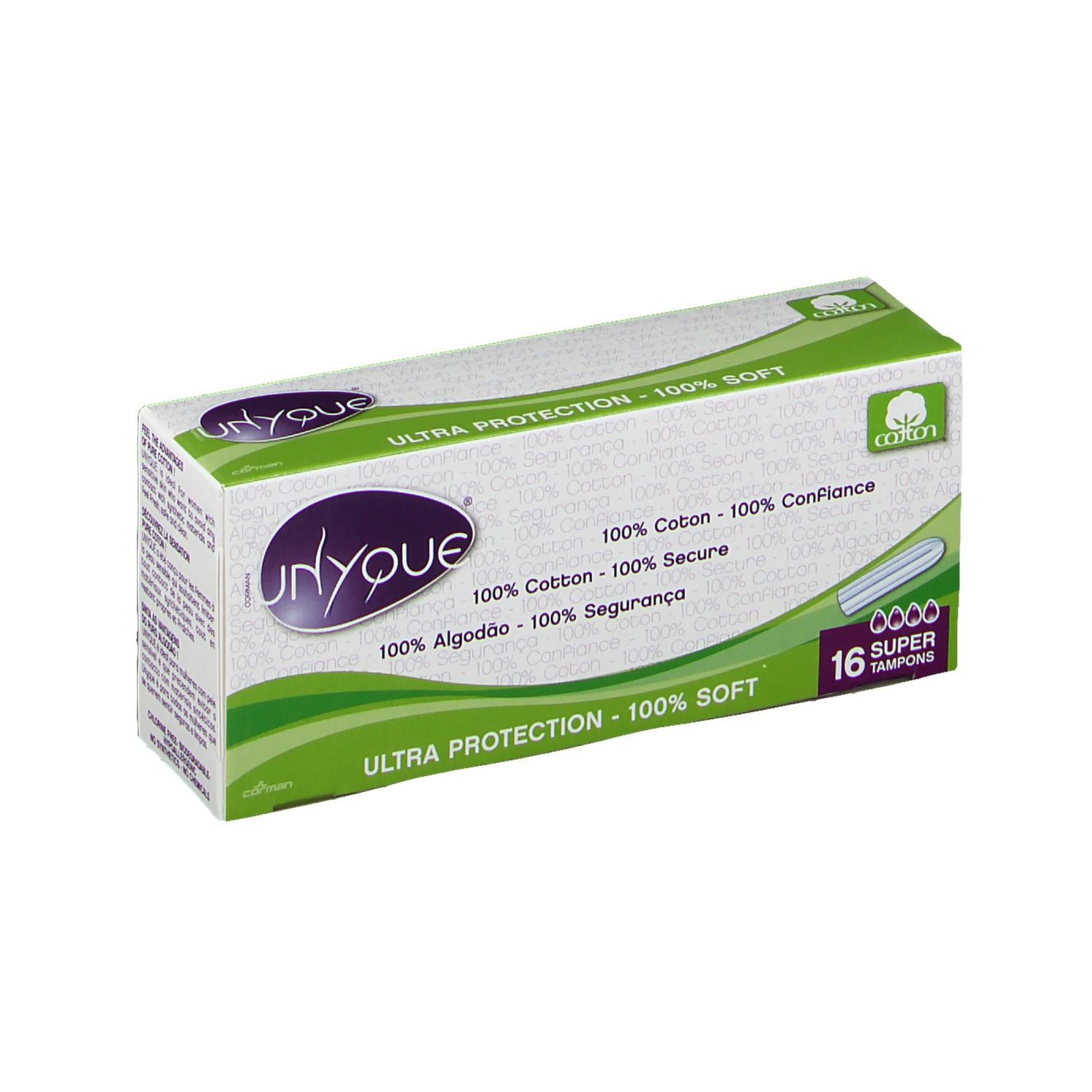 Os tampões extra macios 100% algodão, em versão digital ou com aplicador compacto, oferecem uma absorção excecional, respeitando a privacidade para um conforto ótimo.