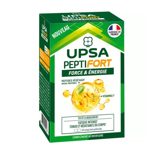 Upsa Peptifort Força e Energia é um complemento alimentar projetado para adultos, que combina peptídeos derivados das favas e vitamina C. Este produto se apresenta como uma solução inovadora para aqueles que experimentam fadiga intensa.