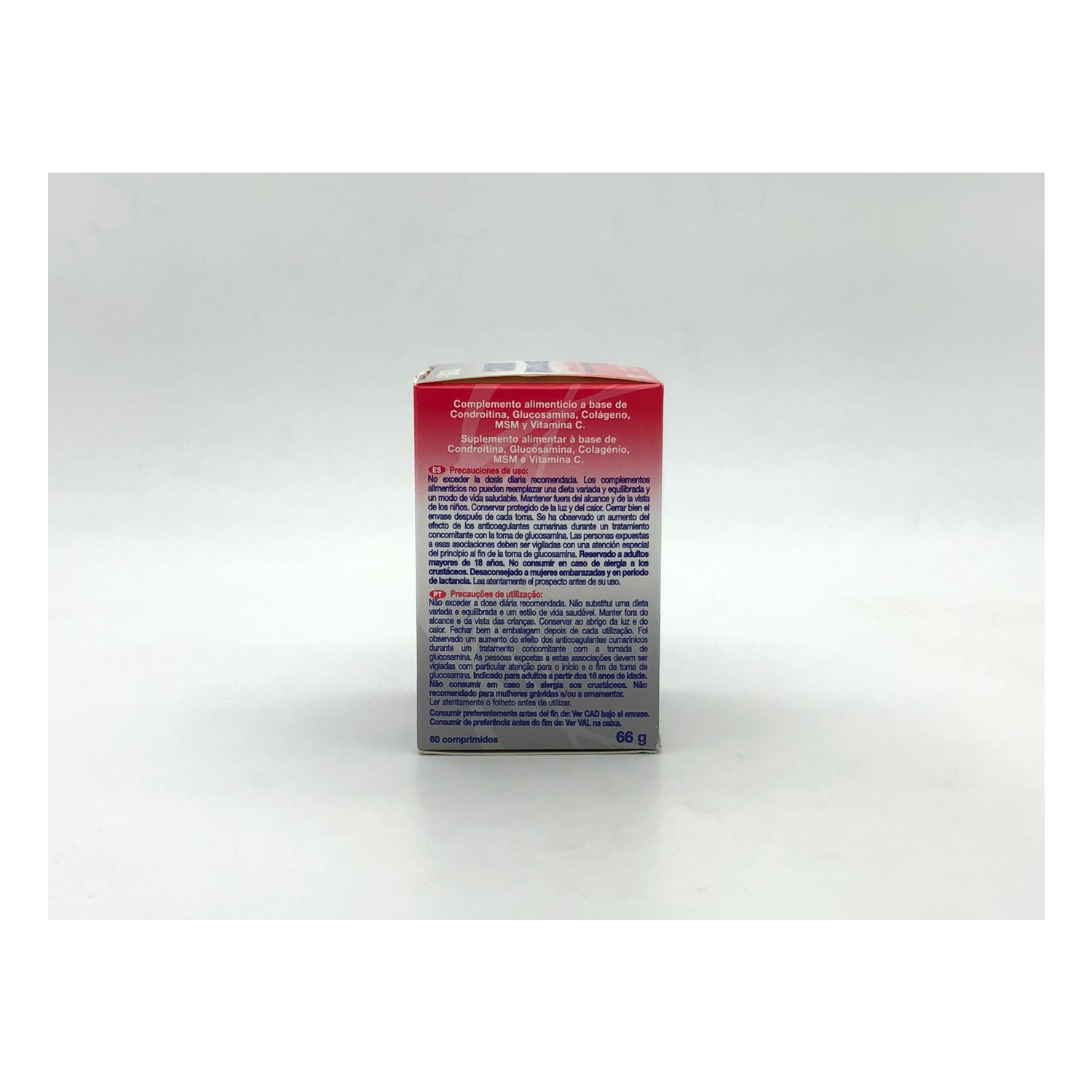 Não exceder a dose diária recomendada. Os suplementos alimentares não podem substituir uma dieta variada e equilibrada e um modo de vida saudável. Manter fora do alcance e da vista das crianças. Conservar protegido da luz e do calor. Fechar bem a embalagem após cada uso. Foi observado um aumento do efeito dos anticoagulantes cumarínicos durante um tratamento concomitante com a ingestão de glucosamina. As pessoas expostas a essas associações devem ser monitoradas com atenção especial do início ao fim da ingestão de glucosamina. Reservado a adultos maiores de 18 anos. Não consumir em caso de alergia a peixes ou crustáceos. Desaconselhado a mulheres grávidas ou em período de amamentação. Para aquelas pessoas que apresentam intolerância à glicose, recomenda-se controlar os níveis de glicose no sangue e, se necessário, as necessidades de insulina antes de começar a ingestão do produto em intervalos regulares durante o uso.
