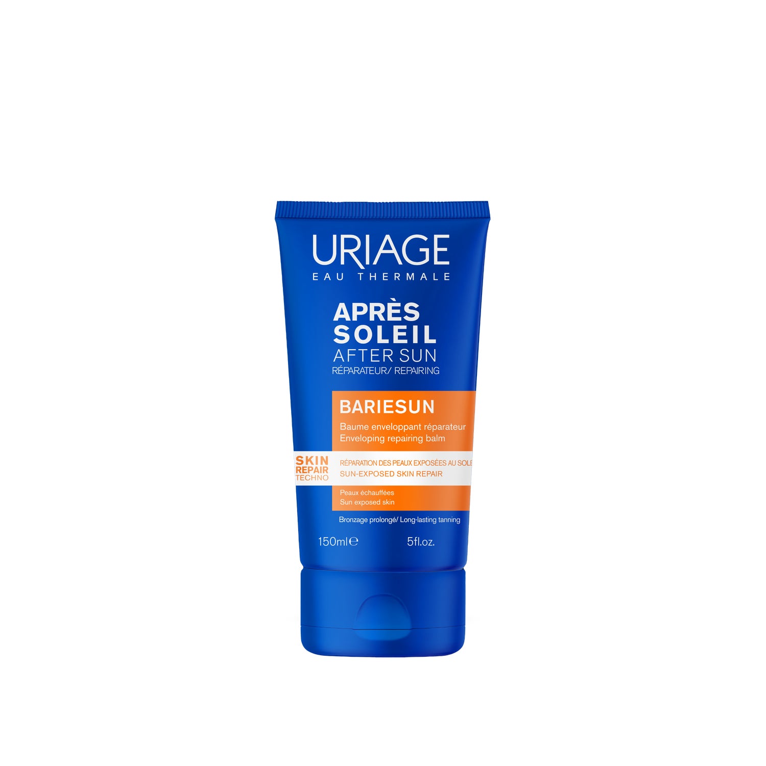 Bálsamo Reparador Aftersun Uriage Bariesun 150ml com textura untuosa e agradável, acalma tua pele após a exposição solar. Sua fórmula com água termal favorece a regeneração e protege contra a secura.