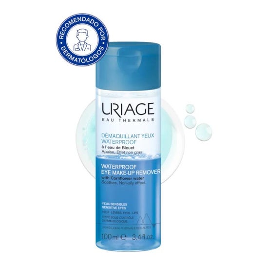 Uriage Démaquillant Yeux Waterproof 100ml é um desmaquilhante bifásico concebido para olhos sensíveis, com uma fase oleosa que solubiliza as fórmulas à prova de água e uma fase aquosa que reduz a sensação de oleosidade. Graças à sua fórmula enriquecida com água floral de centáurea e água termal de Uriage, este desmaquilhante acalma a pele e deixa-a confortável. Testado dermatologicamente.