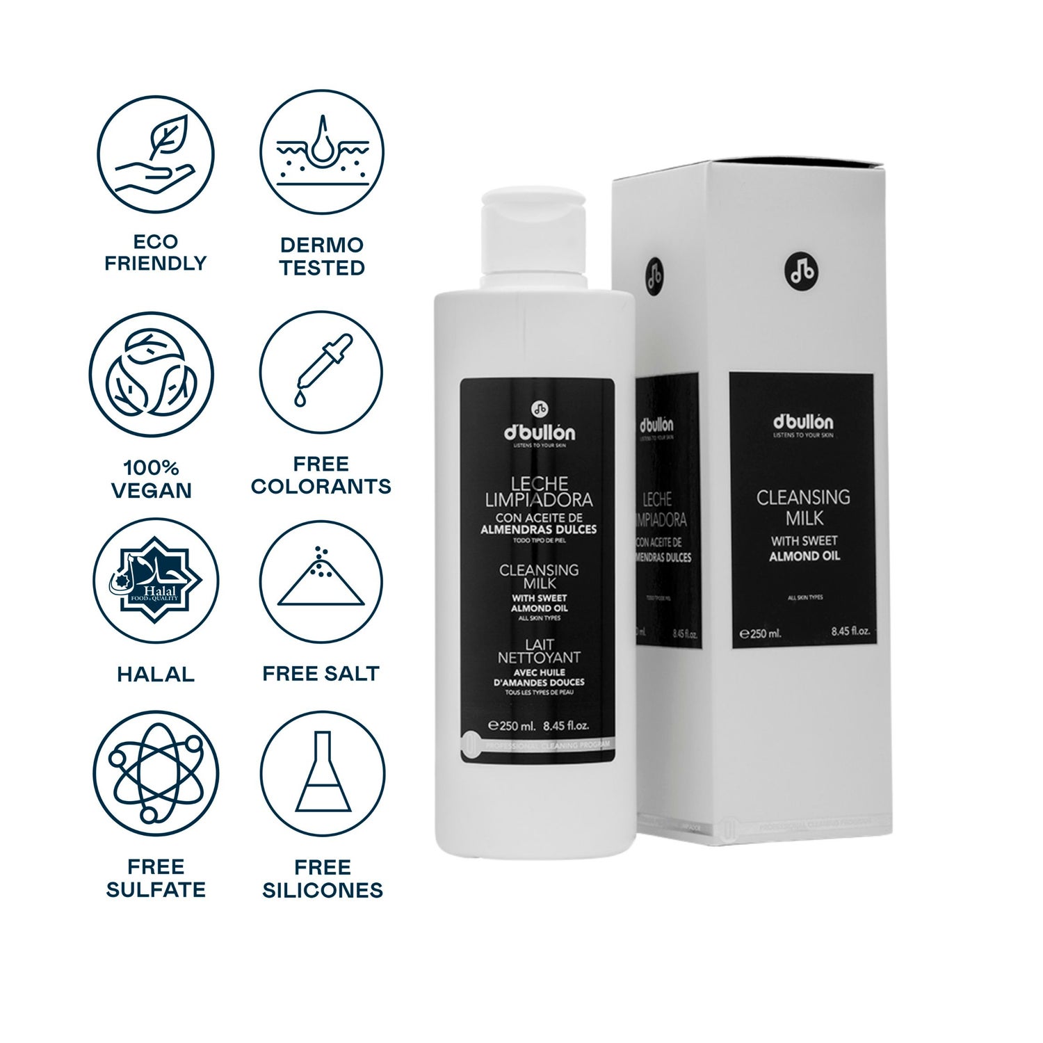 Leite facial de limpeza de fácil aplicação, este leite de limpeza é muito emoliente e com um grande poder de arraste. Limpa a pele, elimina a maquiagem diária, mas também a maquiagem profissional, removendo os resíduos decorativos ou de caracterização artística.