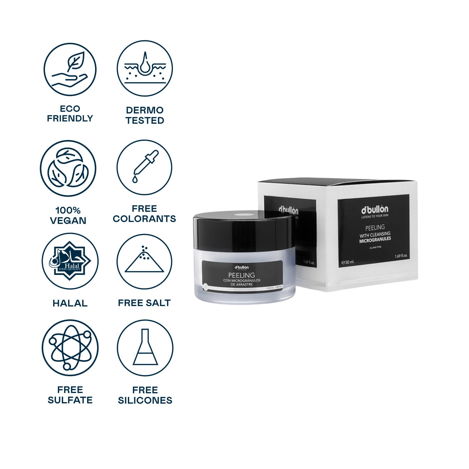 Foi formulado com ácido poliláctico, umas micropartículas biodegradáveis provenientes de açúcares vegetais cuja função principal é a esfoliação. É muito suave, vegano e conta com a certificação Halal.
