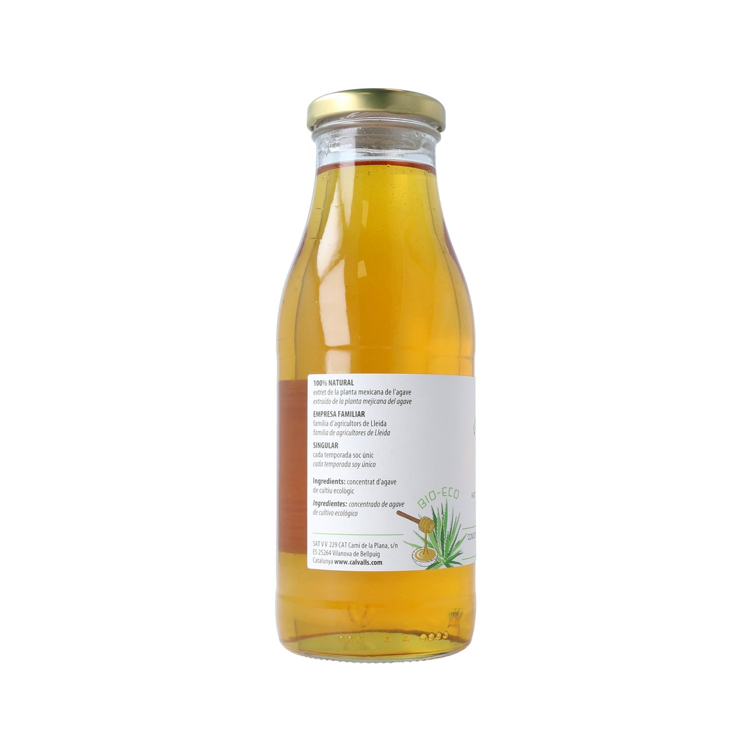 O xarope concentrado de sumo de agave da Cal Valls é feito com sumo extraído da folha da planta de agave, um poderoso adoçante que contém grandes quantidades de frutose natural. Além disso, fornece ao organismo sódio, potássio, ferro e as vitaminas C e E. Contém menos calorias do que o açúcar branco processado, graças a uma composição que inclui 75% de frutose. Ou seja, é um açúcar natural. No entanto, os restantes 25% são glicose; portanto, não é um produto adequado para consumidores diabéticos. Os altos teores de glicose em outros adoçantes favorecem o apetite excessivo, por isso este produto, que tem um baixo índice glicêmico, ajuda a manter a sensação de saciedade. Os produtos da Cal Valls vêm da agricultura biológica, garantindo o mínimo impacto negativo no meio ambiente.