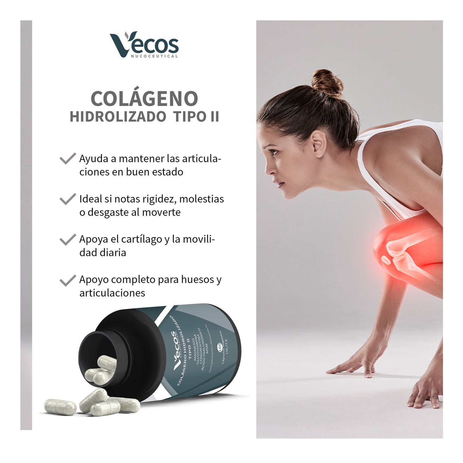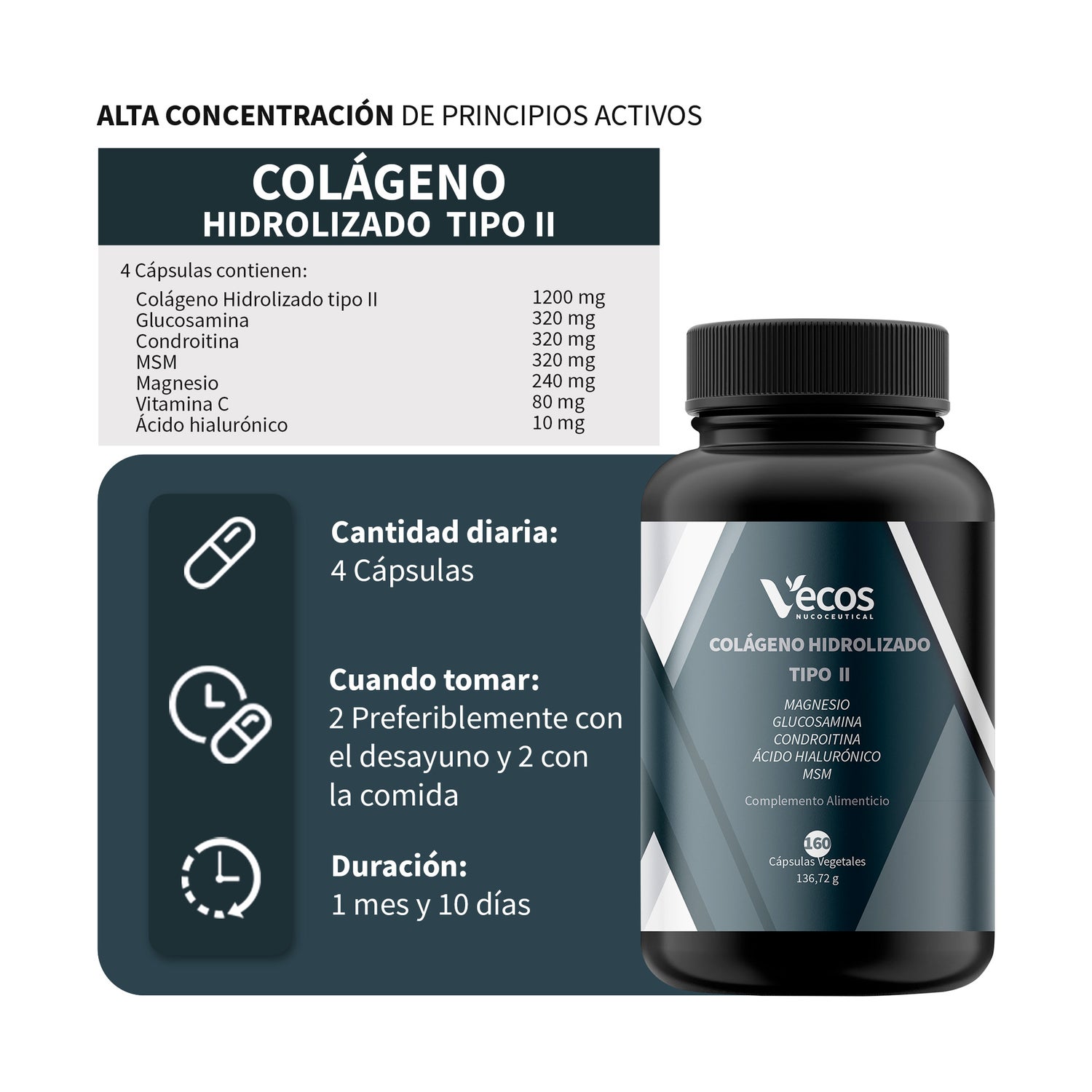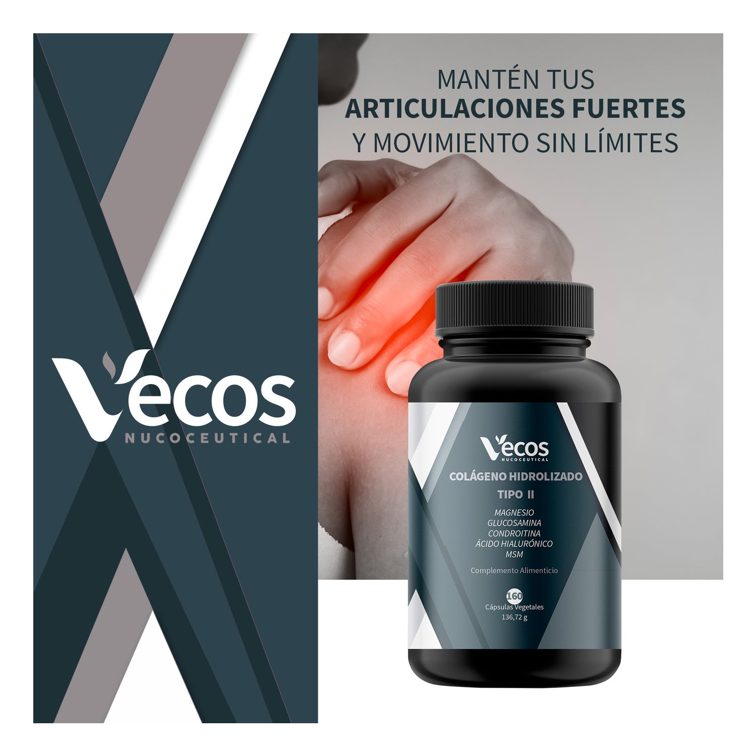 Vecos Nucoceuticals Colágeno Hidrolizado Tipo II 160caps é um complemento alimentar formulado com colágeno tipo II, ácido hialurônico e vitamina C. Favorece a manutenção normal das articulações e contribui para prevenir o desgaste da cartilagem.