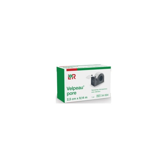 Fita adesiva especial de esparadrapo para peles sensíveis, que é microporosa e que é apresentada num dispensador que permite a fixação do penso, num dispensador muito confortável e prático, permitindo um corte rápido, proporcionando uma boa fixação do penso e uma boa tolerância na pele.