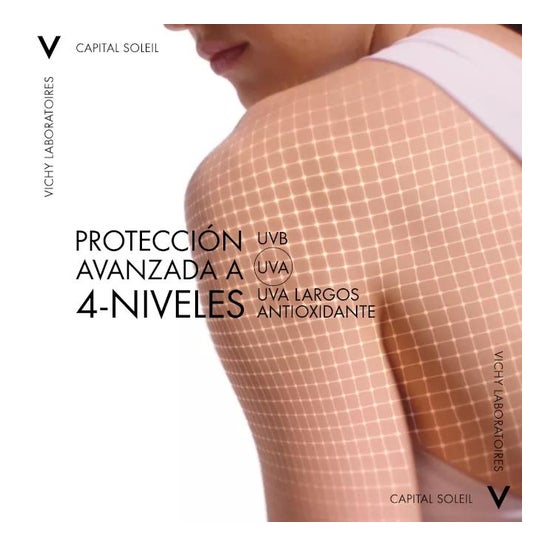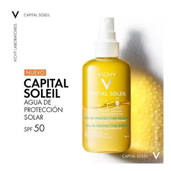 Vichy Capital Soleil Protective Moisturising Sunscreen SPF50 200ml é um protetor solar em spray. Formulado com uma combinação única de filtros UV de largo espetro e uma fórmula sensorial, enriquecida com ácido hialurónico. Além disso, tem uma textura aquosa ultra-fresca e não pegajosa que facilita a aplicação sem manchas brancas e protege eficazmente a pele graças ao seu índice SPF 50. Tem um efeito altamente hidratante e nutritivo na pele. É resistente à água e ao suor e tem um aroma agradável. Testado sob controlo dermatológico e em peles sensíveis. Hipoalergénico.