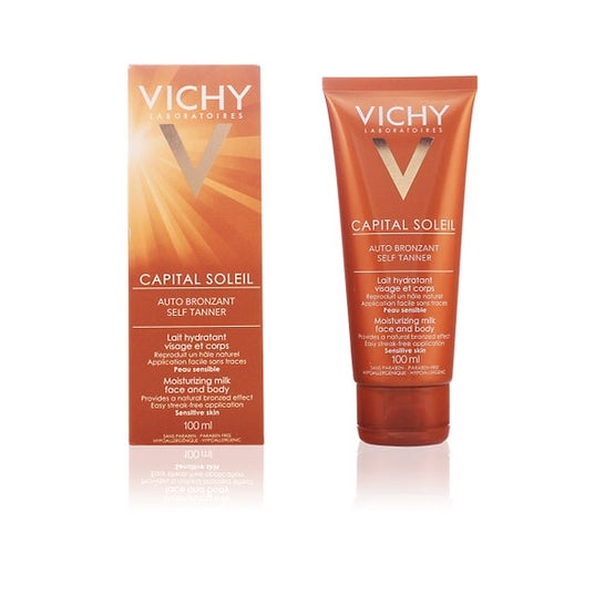 Vichy Capital Soleil Self Tanning Milk é um creme adequado para todos os tipos de pele e especificamente concebido para obter um tom de pele bronzeado natural e uniforme quando aplicado e permite uma hidratação profunda durante 8 horas.