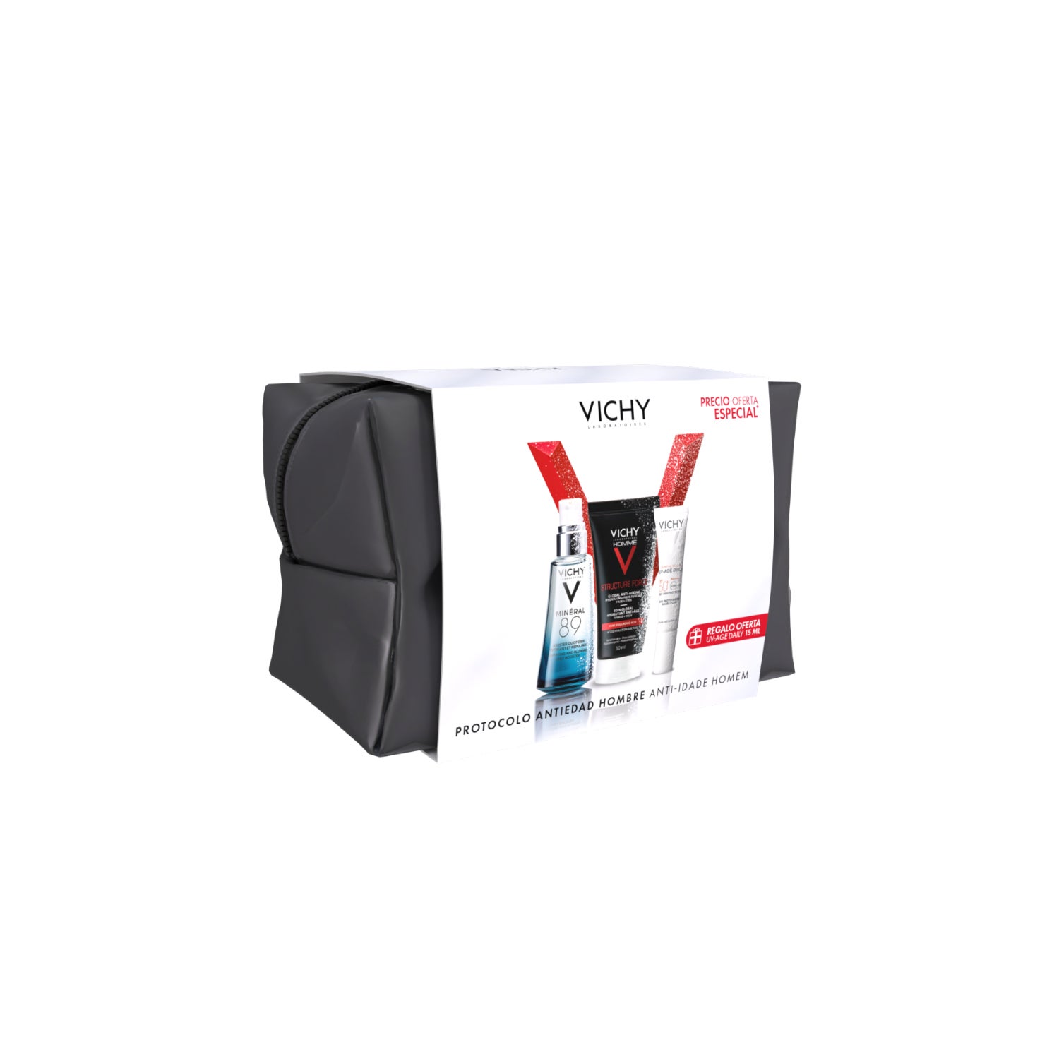 Vichy Cofre Protocolo Antienvelhecimento Homem é um conjunto integral projetado especificamente para o cuidado da pele masculina. Este pack inclui três produtos de alta eficácia: