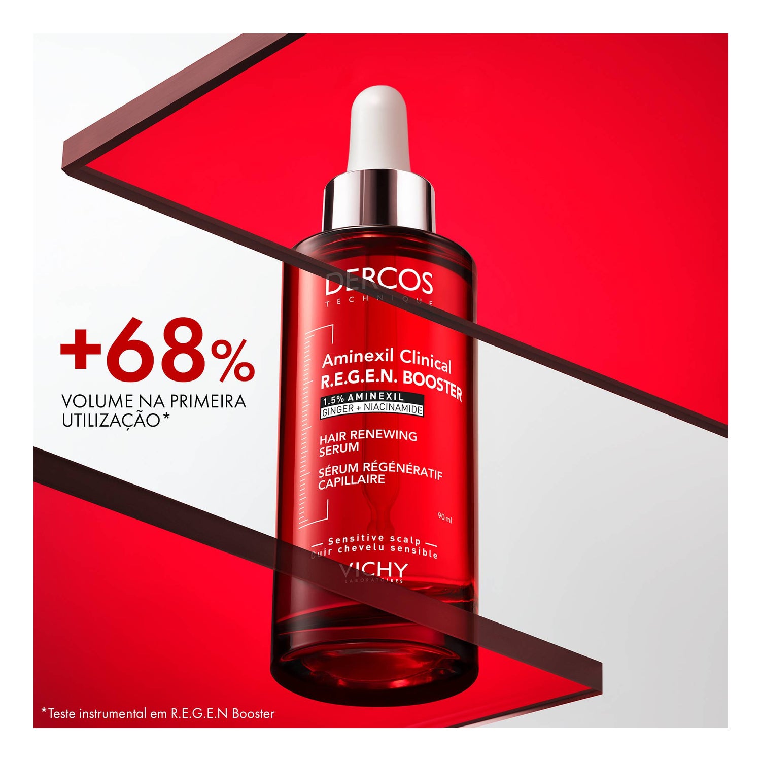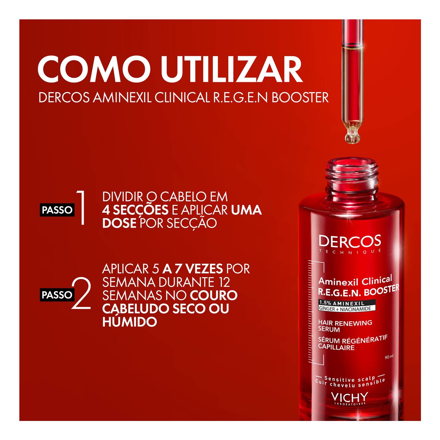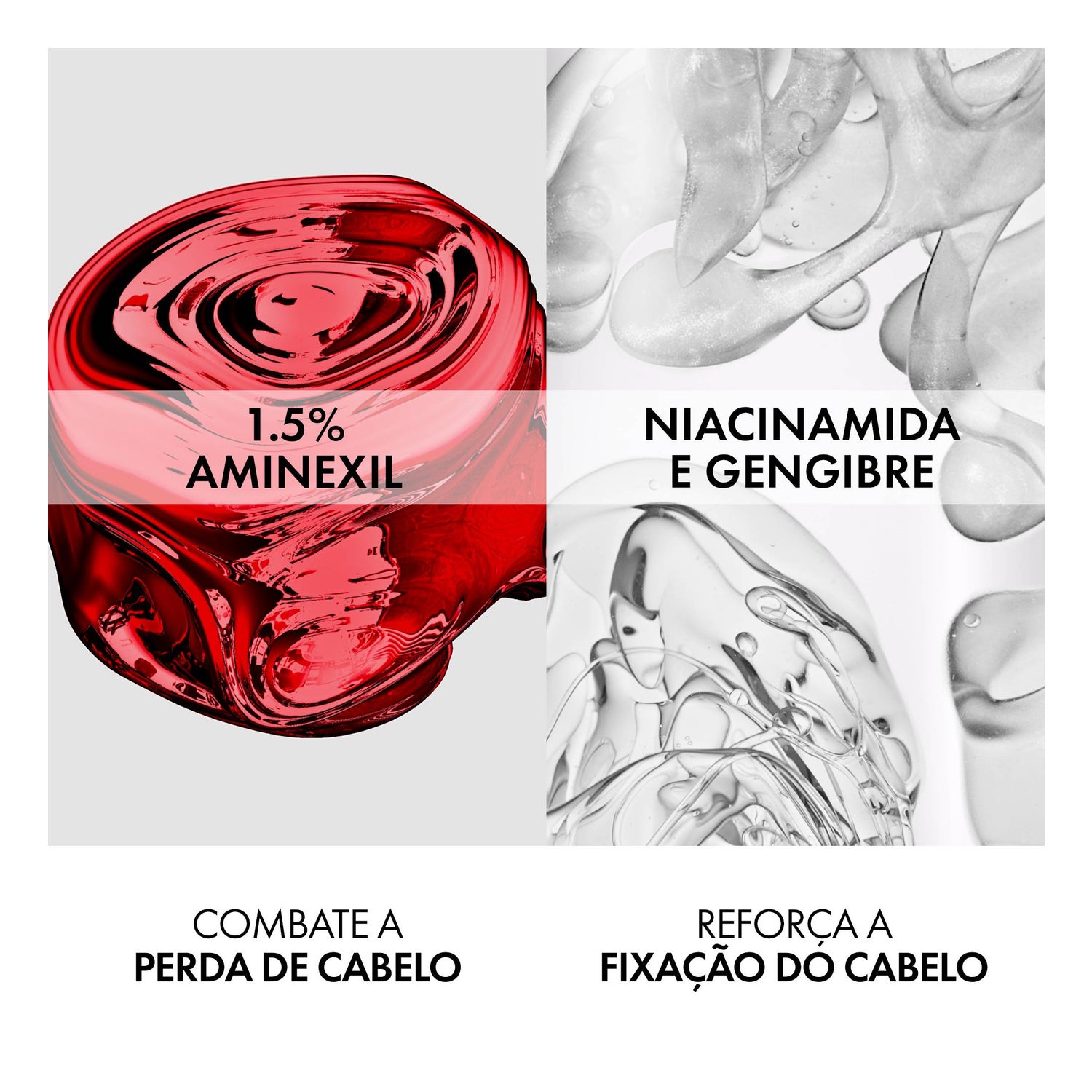 Prime sérum regenerador capilar DERCOS com 1,5% de Aminexil e gengibre + niacinamida para uma dupla ação: reduz a queda de cabelo* e estimula seu crescimento**.