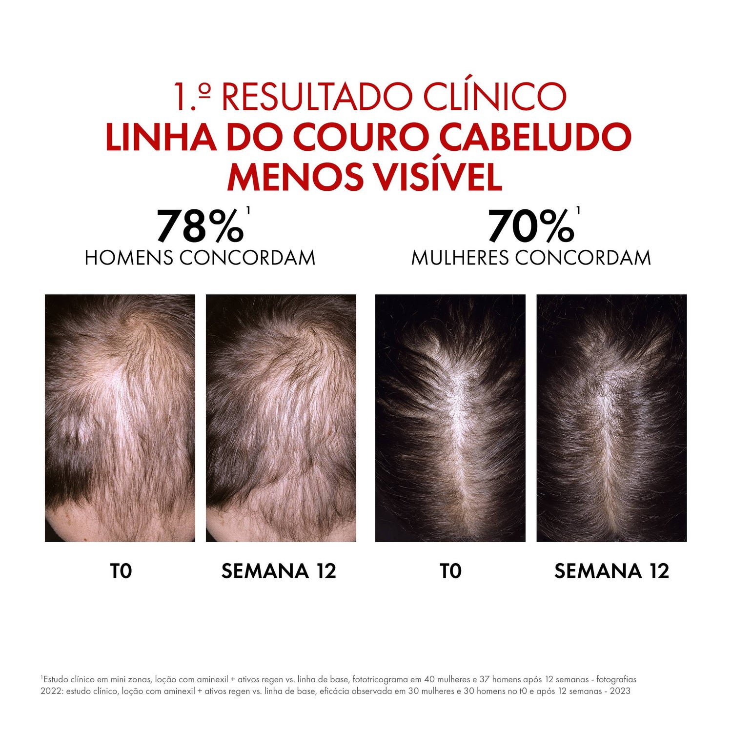Clinicamente testado em mulheres e homens: +14.000 fios em 12 semanas*.